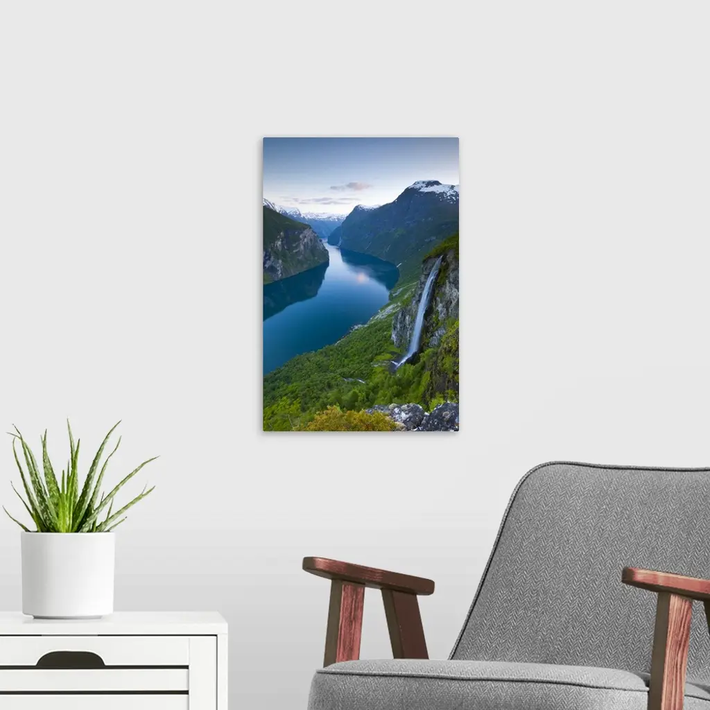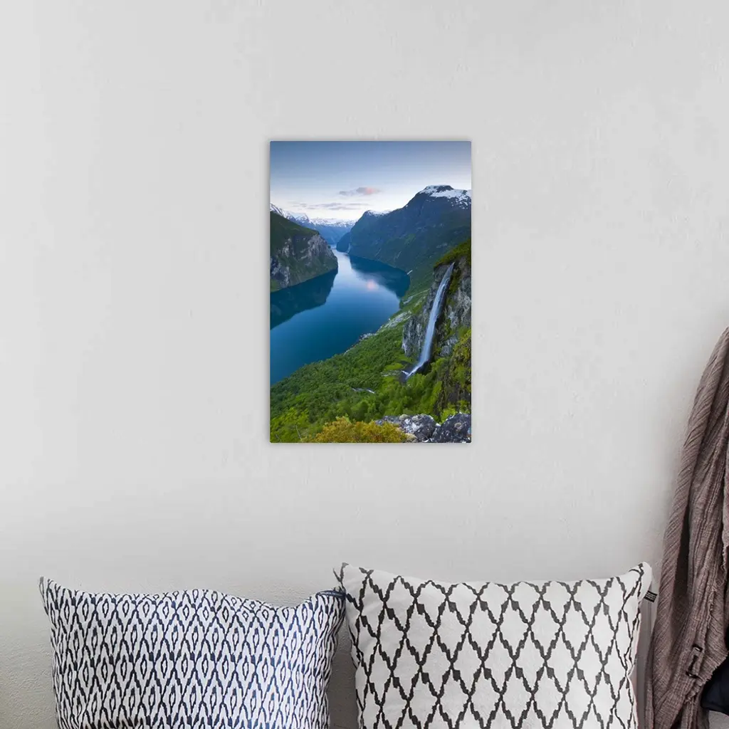The Majestic Geiranger Fjord illuminated at dusk, Geiranger, More og Romsdal, Norway