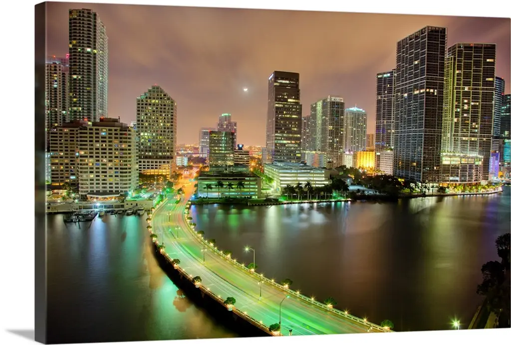 The Miami Causeway And Skyline At Night