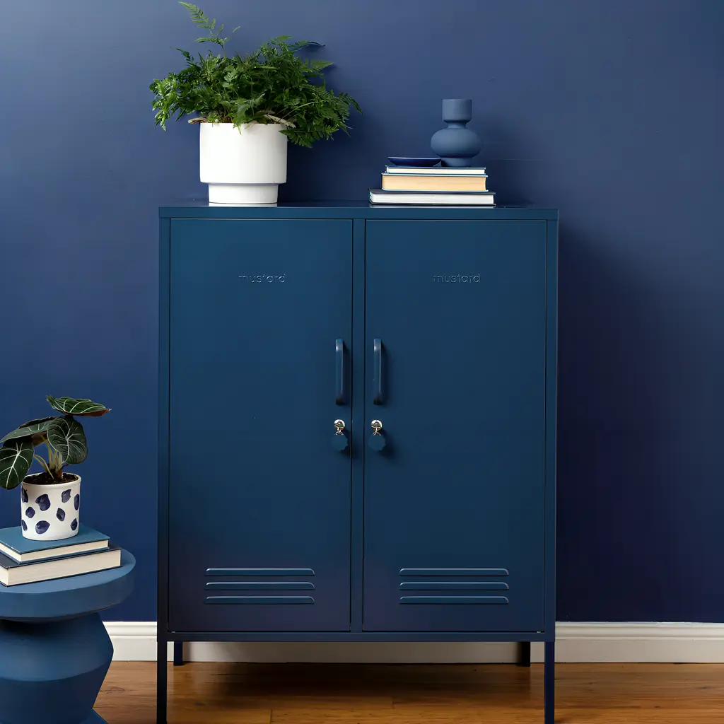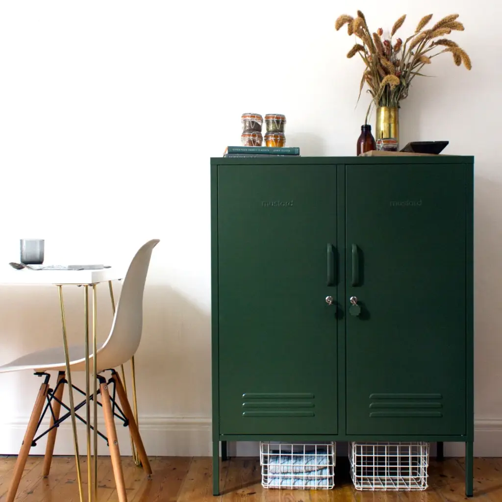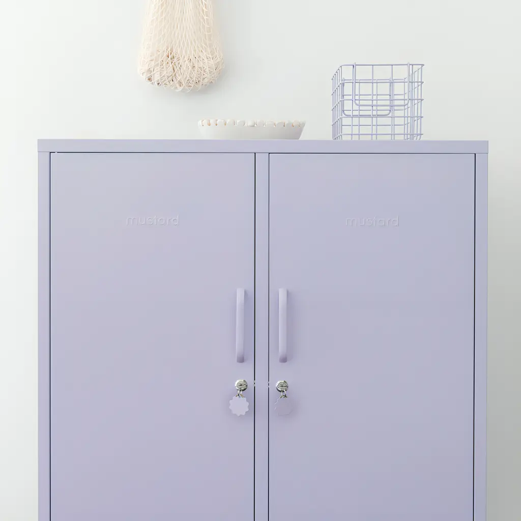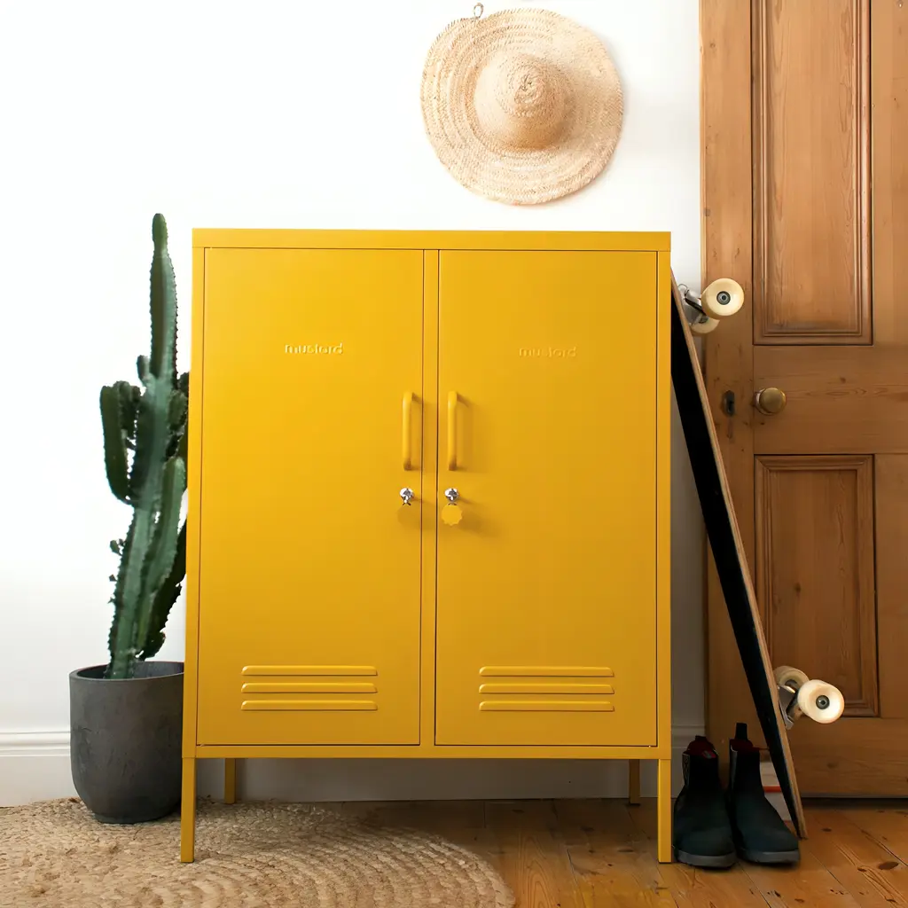 Sometimes, average is just right. Aptly named The Midi, this Mustard Made metal office locker is not to tall, not too wide, and not too small to offer a practical storage solution for any space. The design optimizes function in a minimalist design, making this locker a great choice for offices, living rooms, children’s playrooms, kitchens, and hallways. Whether you want to use it to store plates, towels, toys, or office supplies, The Midi will help you organize items with ease. The two adjustable shelves on both sides and two hooks offer plenty of storage room for a variety of objects, while air vents on the bottom of the locker ensure optimal ventilation. Other features include two openings for cable management, two wall-mounting points and a lock with a key and a custom keyring. Crafted from powder-coated steel, the Mustard Made The Midi Office Locker is not only durable and tough, but also magnetic. Choose your favorite color from pastel, bright or dark neutral hues to enhance your home décor.