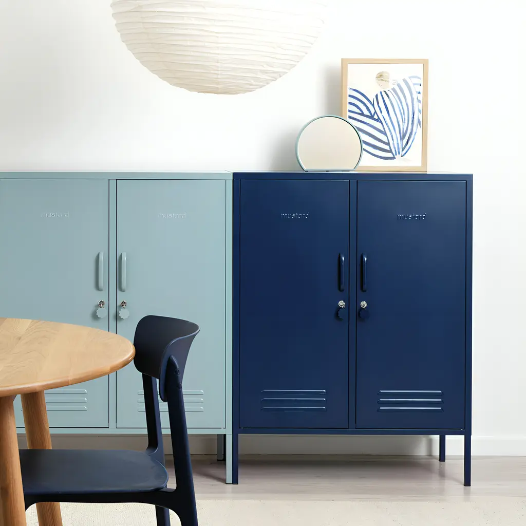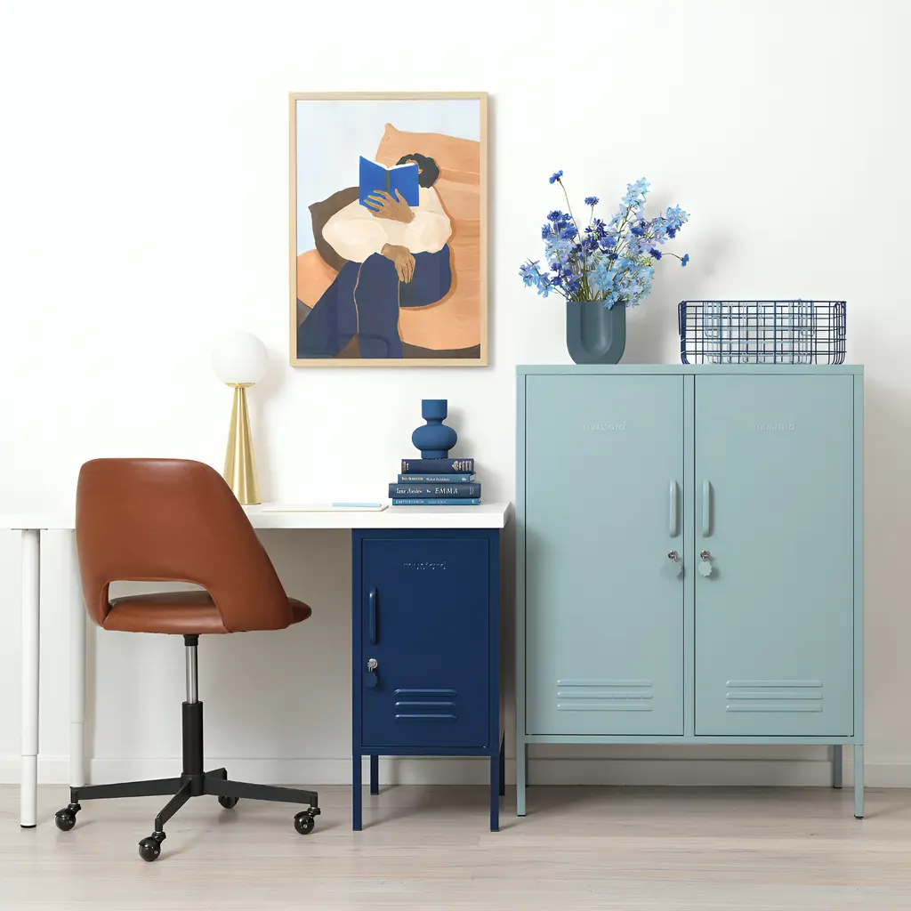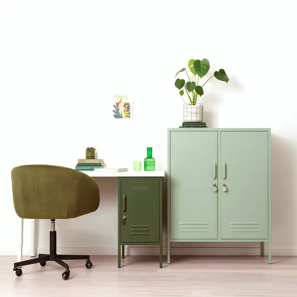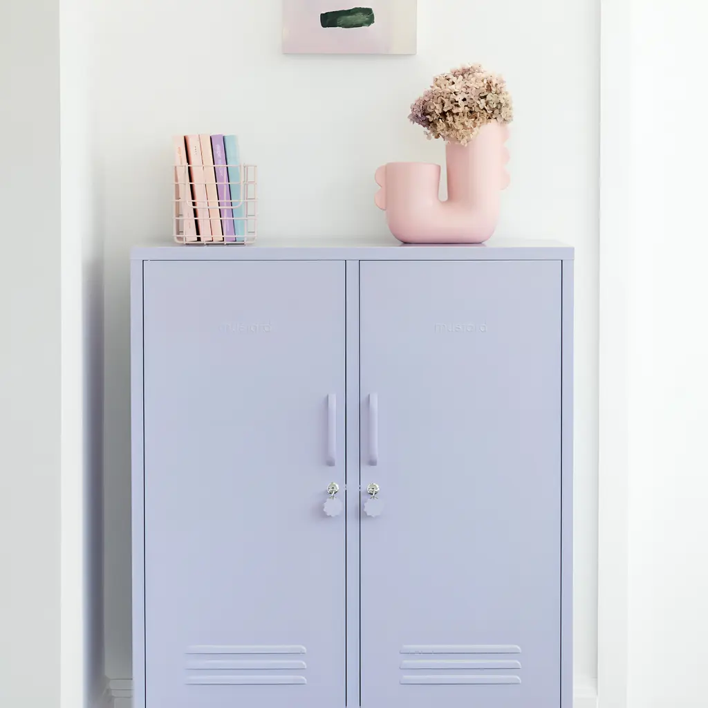 Sometimes, average is just right. Aptly named The Midi, this Mustard Made metal office locker is not to tall, not too wide, and not too small to offer a practical storage solution for any space. The design optimizes function in a minimalist design, making this locker a great choice for offices, living rooms, children’s playrooms, kitchens, and hallways. Whether you want to use it to store plates, towels, toys, or office supplies, The Midi will help you organize items with ease. The two adjustable shelves on both sides and two hooks offer plenty of storage room for a variety of objects, while air vents on the bottom of the locker ensure optimal ventilation. Other features include two openings for cable management, two wall-mounting points and a lock with a key and a custom keyring. Crafted from powder-coated steel, the Mustard Made The Midi Office Locker is not only durable and tough, but also magnetic. Choose your favorite color from pastel, bright or dark neutral hues to enhance your home décor.