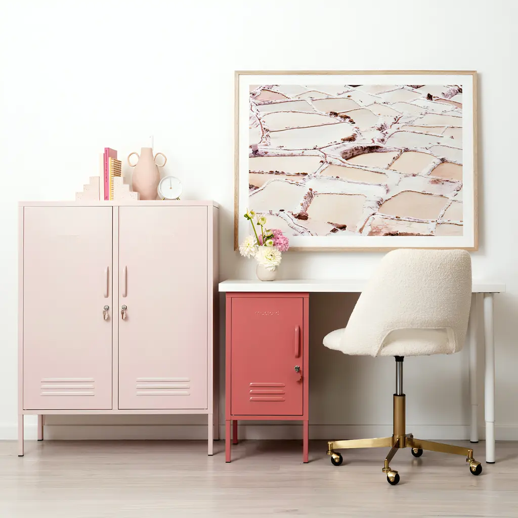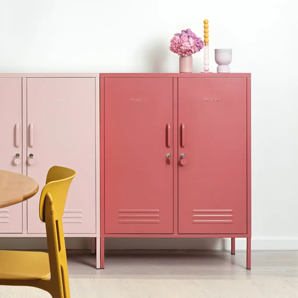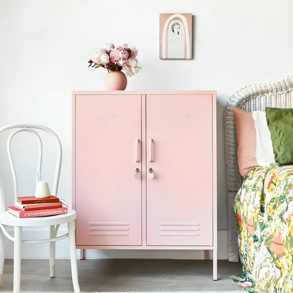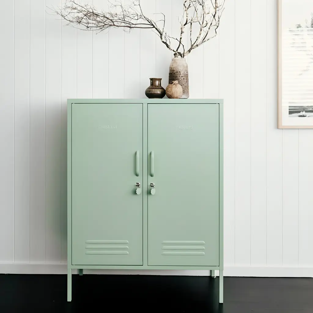 Sometimes, average is just right. Aptly named The Midi, this Mustard Made metal office locker is not to tall, not too wide, and not too small to offer a practical storage solution for any space. The design optimizes function in a minimalist design, making this locker a great choice for offices, living rooms, children’s playrooms, kitchens, and hallways. Whether you want to use it to store plates, towels, toys, or office supplies, The Midi will help you organize items with ease. The two adjustable shelves on both sides and two hooks offer plenty of storage room for a variety of objects, while air vents on the bottom of the locker ensure optimal ventilation. Other features include two openings for cable management, two wall-mounting points and a lock with a key and a custom keyring. Crafted from powder-coated steel, the Mustard Made The Midi Office Locker is not only durable and tough, but also magnetic. Choose your favorite color from pastel, bright or dark neutral hues to enhance your home décor.