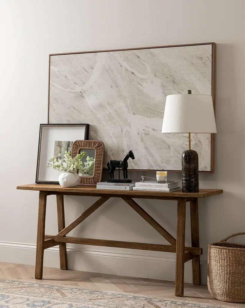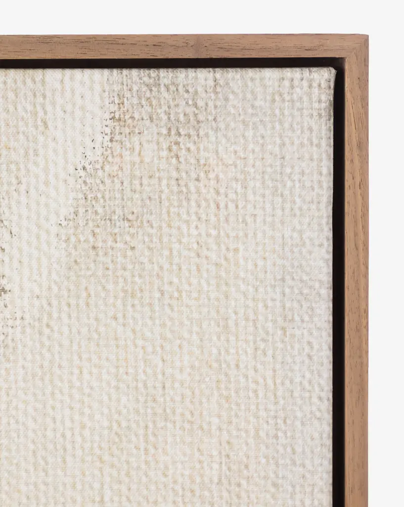 Subtle and abstract, The Oath 2 is a floated print on raw canvas that uses tone and detail to create a masterful composition. The neutral piece enhances your styling, whether it is styled alone or within a curated display.