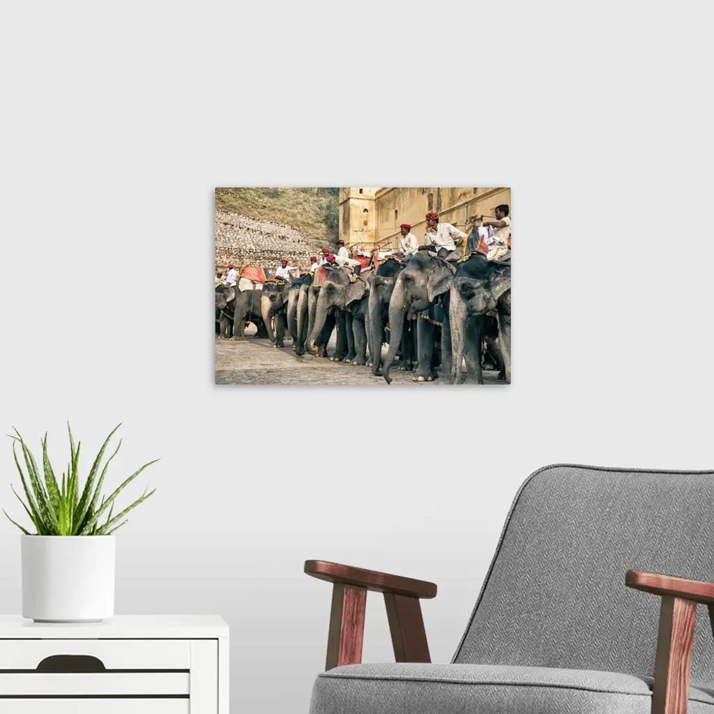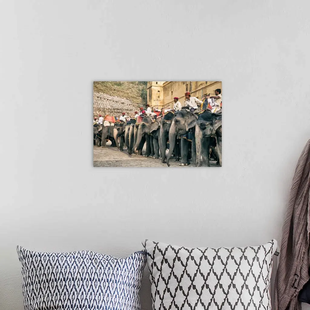 The painted elephants and their trainers in Jaipur, India.