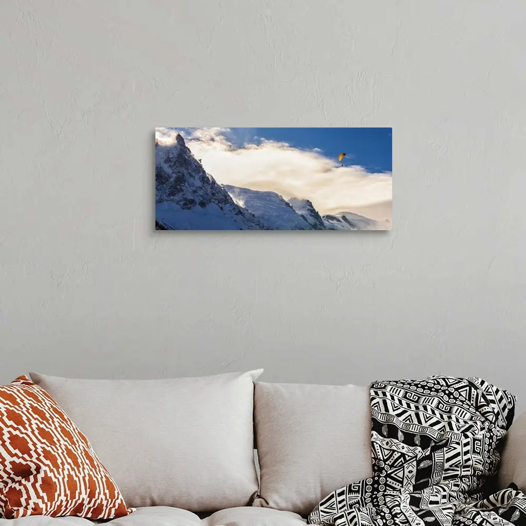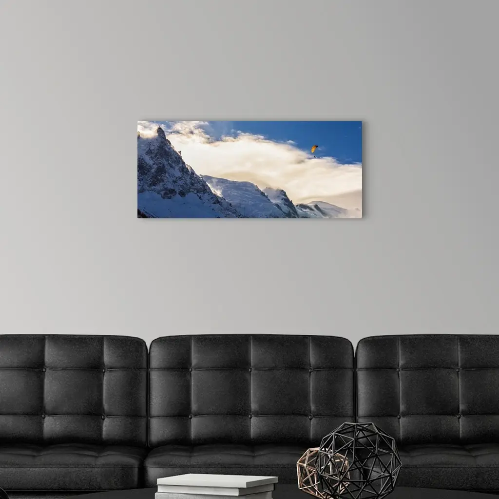Photograph of Mont Blanc with a parachuter enjoying the views