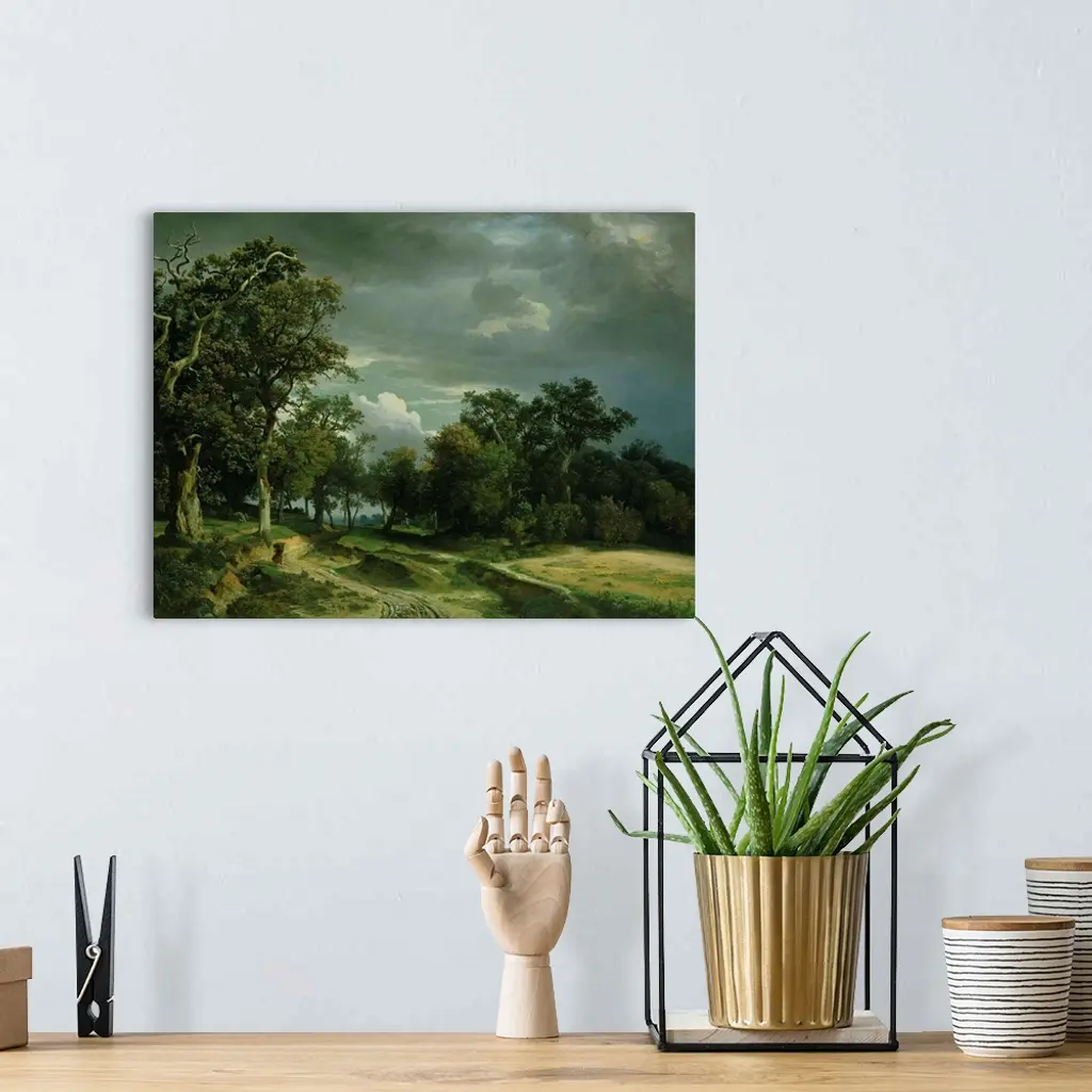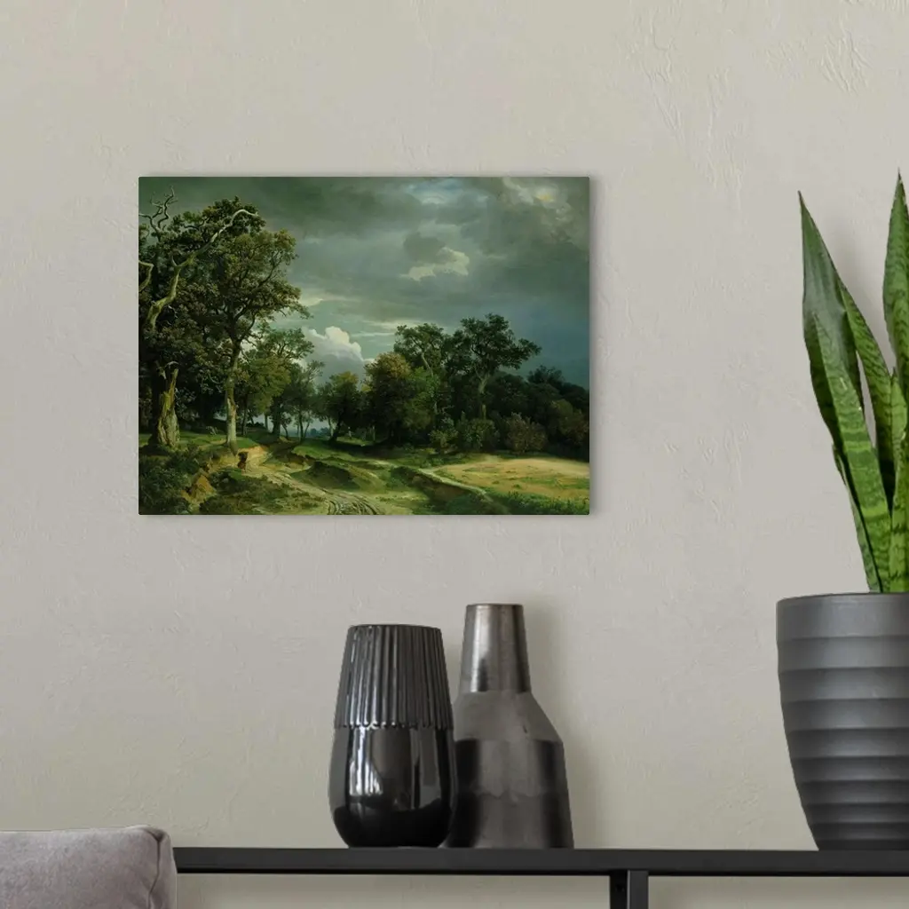 XKH151672 The Path on the Edge of the Wood, c.1851 (oil on canvas) by Schirmer, Johann Wilhelm (1807-63)
