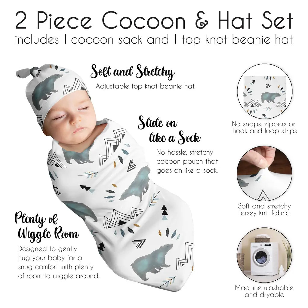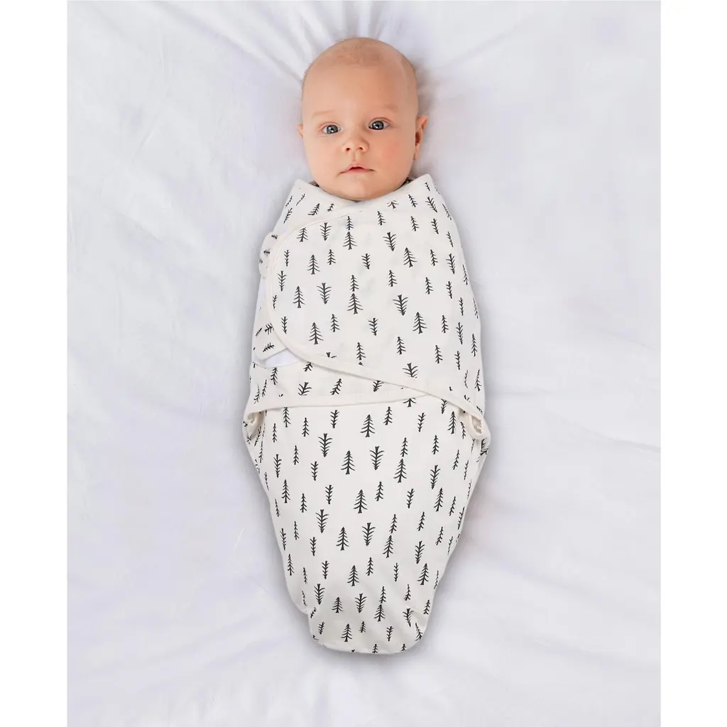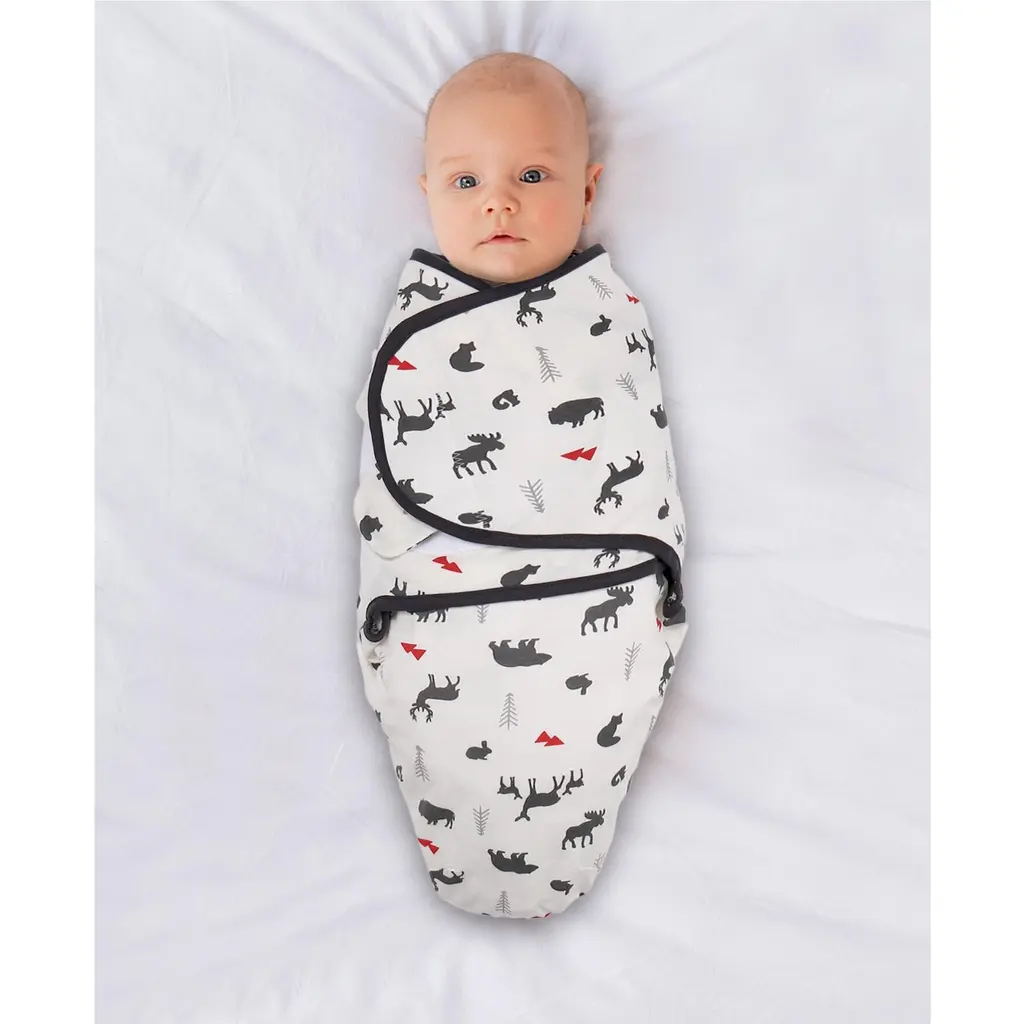 Your baby will always be comfy, cozy, and stylish as they go off to sleep in The Peanutshell baby swaddle blankets! The 3-pack set is great for new moms and dads, ensuring that there will always be an extra swaddle or two on hand. This set includes a fun traditional buffalo plaid print in red and black, silhouettes of forest friends in shades of black, grey, and red on a warm ivory ground, and little trees in black on an ivory ground are the perfect assortment for your little one. Swaddling your baby securely is made easy with our adjustable fabric wings that fasten securely with hook and loop attachments to create the perfect fit.