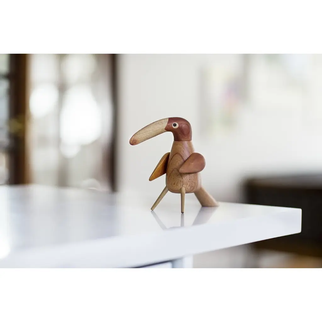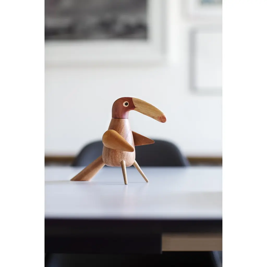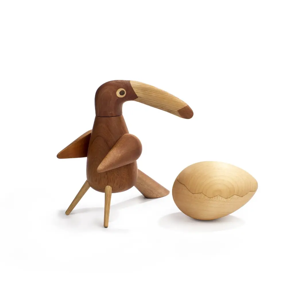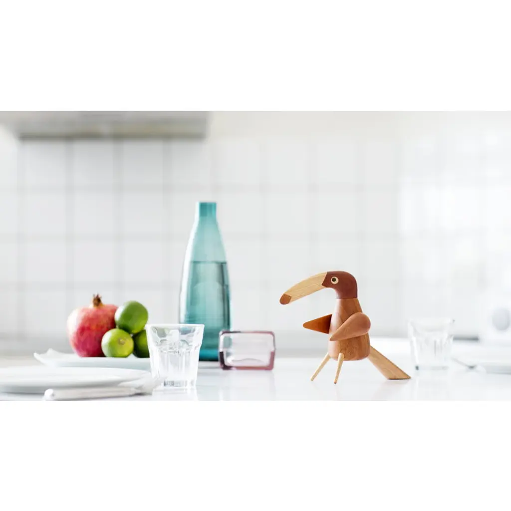 Spring Copenhagen's The Pepper Bird grinder combines high quality and craftsmanship with playful and inventive design. The grinder, made of mahogany, ash, maple and walnut, works by rotating the bird's head; the pepper is filled into the mill through the bird's removable wing. Balanced on its feet and tail, the handmade, tucan-like Pepper Bird grinder will delight you both as a utensil in the kitchen and dining area and as a decoration on a bookshelf or chest of drawers.