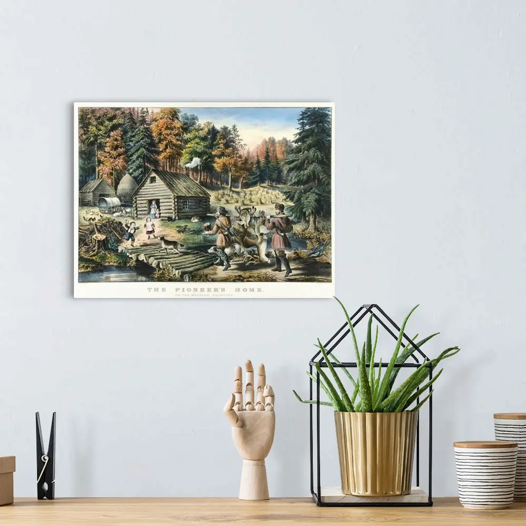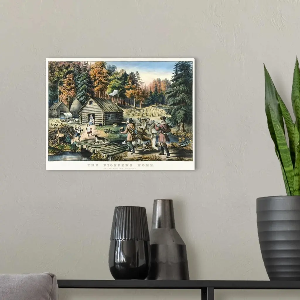 The Pioneer's Home on the Western Frontier, 1867 (collour lithograph) by Currier, N. (1813-88) and Ives, J.M. (1824-95)