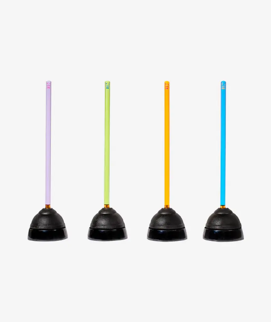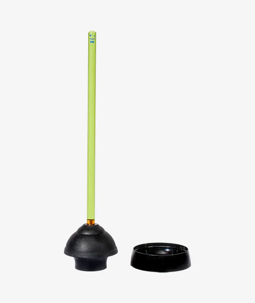 Bring some joy to your bathroom, especially when you need it most! This Staff is a plunger. Complete with a sleek and sanitary drip tray. Plus a bronze ring for a little razzle dazzle. It works too, trust us.