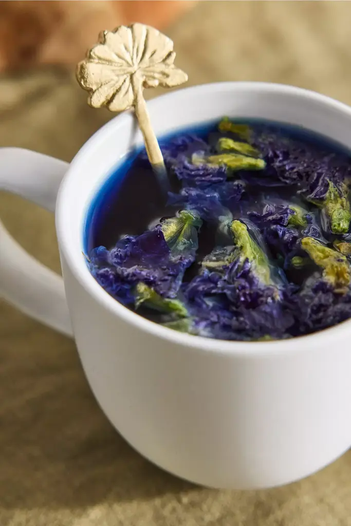 Gentle, slightly earthy, and woody in flavor, Butterfly Pea Tea is a fragrant, caffeine-free herbal tea made from the dried flowers of the Clitoria ternatea plant. It has a light, sweet taste and a beautiful blue-violet color that changes when mixed with lemon juice and other types of citrus fruit juices. Its unique flavor and beautiful color make it a perfect addition to any beverage menu. High in antioxidants, vitamins, and minerals, its health benefits include stress relief, improved cognitive performance, and potential anti-aging properties.Brewing instructions: Pour boiling hot water over 4-5 flowers and steep for 3 mins.