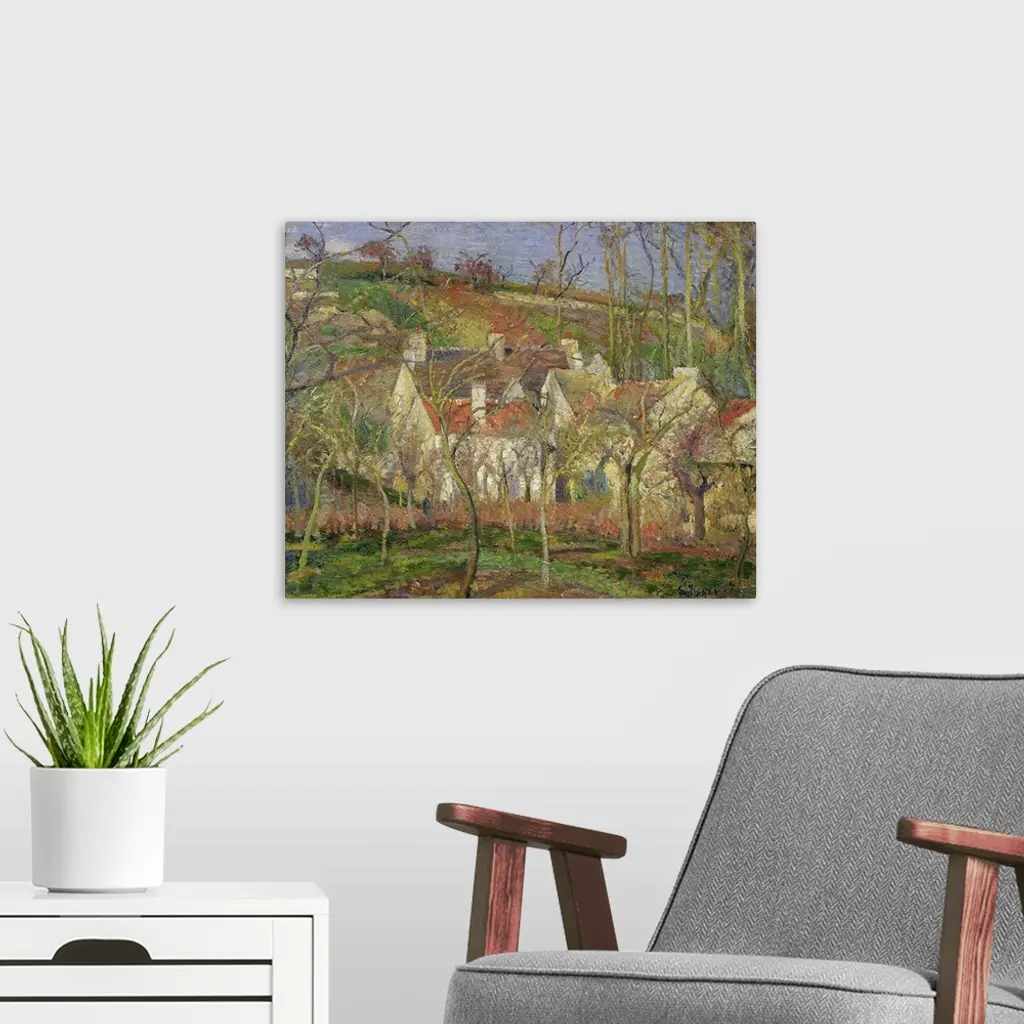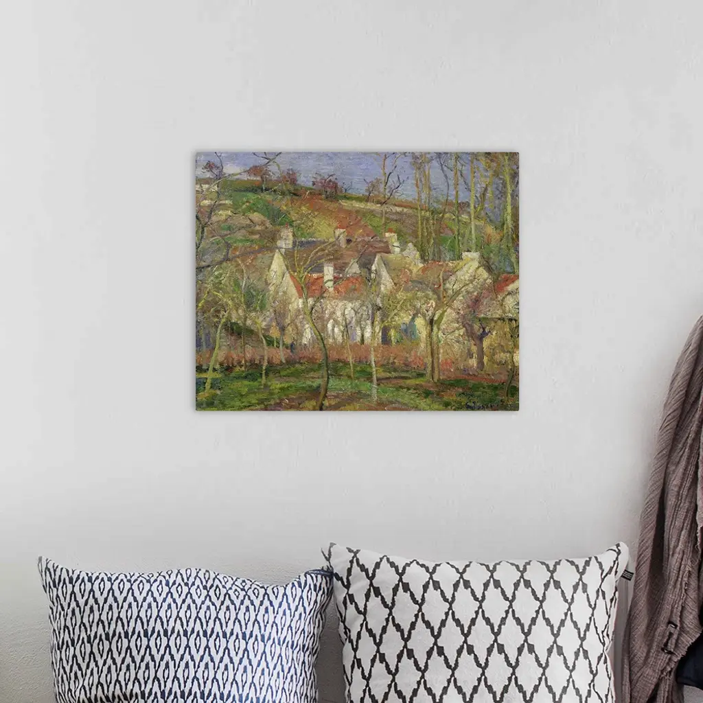 XIR30235 The Red Roofs, or Corner of a Village, Winter, 1877 (oil on canvas) by Pissarro, Camille (1831-1903); 54.5x65.5 cm; Musee d'Orsay, Paris, France; (add. info.: Les Toits Rouges, coin de village, effet d'hiver); Giraudon; French, out of copyright