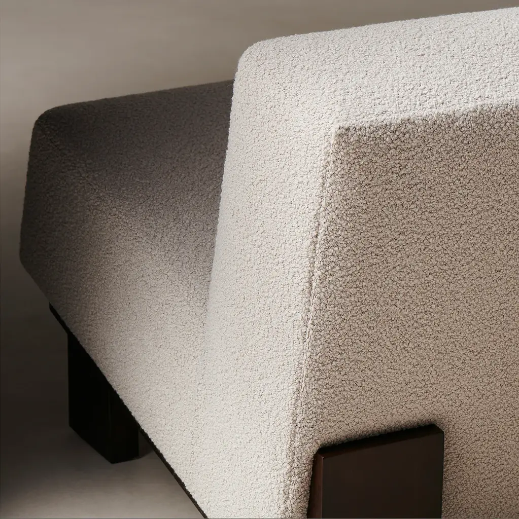 The Remsen Chair’s bold proportions and streamlined silhouette are informed by Art Moderne design. It has a low-slung seat that sits at an angle atop a sculptural white oak base. Handcrafted in North Carolina.