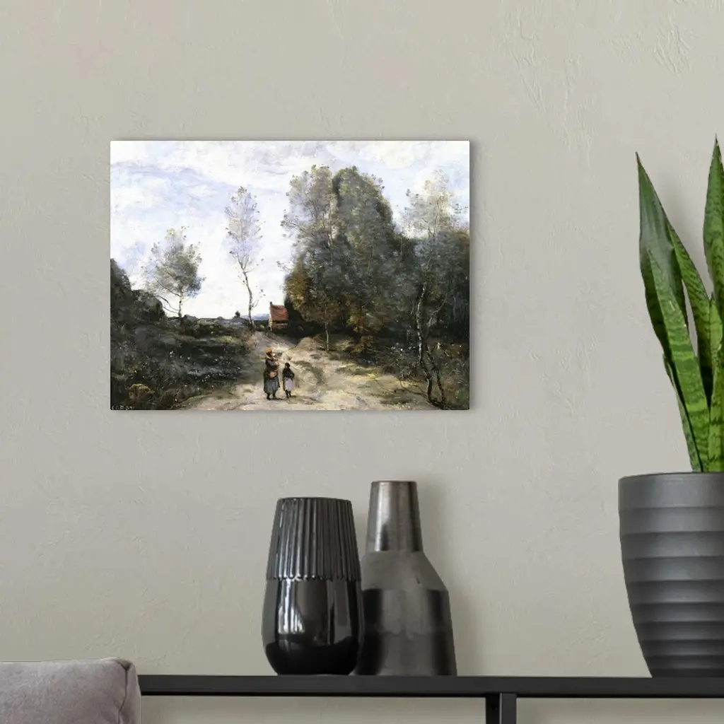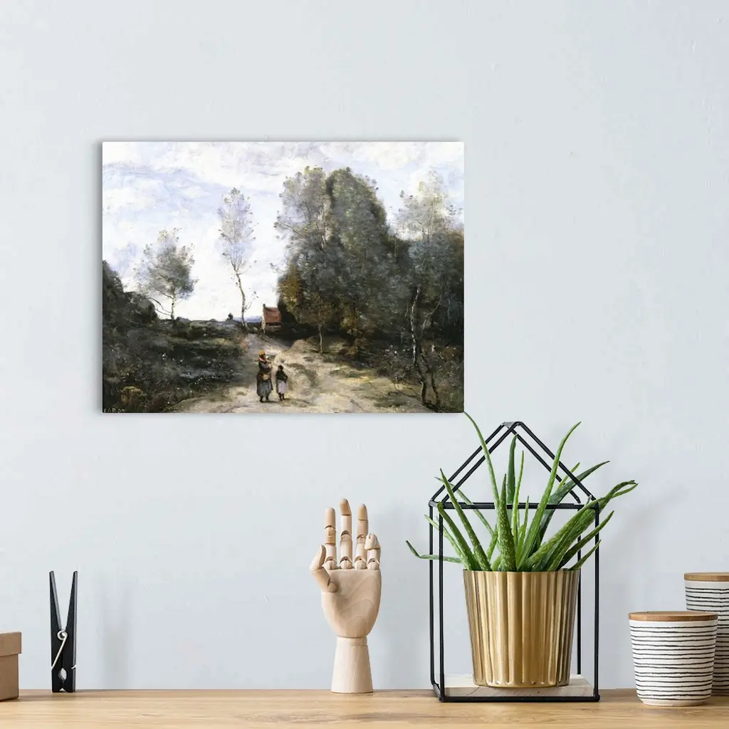 XIR18908 The Road (oil on canvas) by Corot, Jean Baptiste Camille (1796-1875); 40x56.5 cm; Louvre, Paris, France; Giraudon; French, out of copyright
