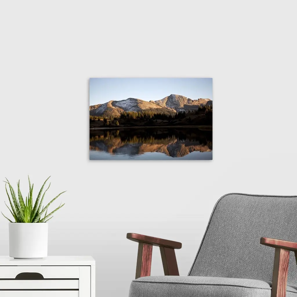 The Rocky Mountains are reflected in Molas Lake near Silverton, CO.