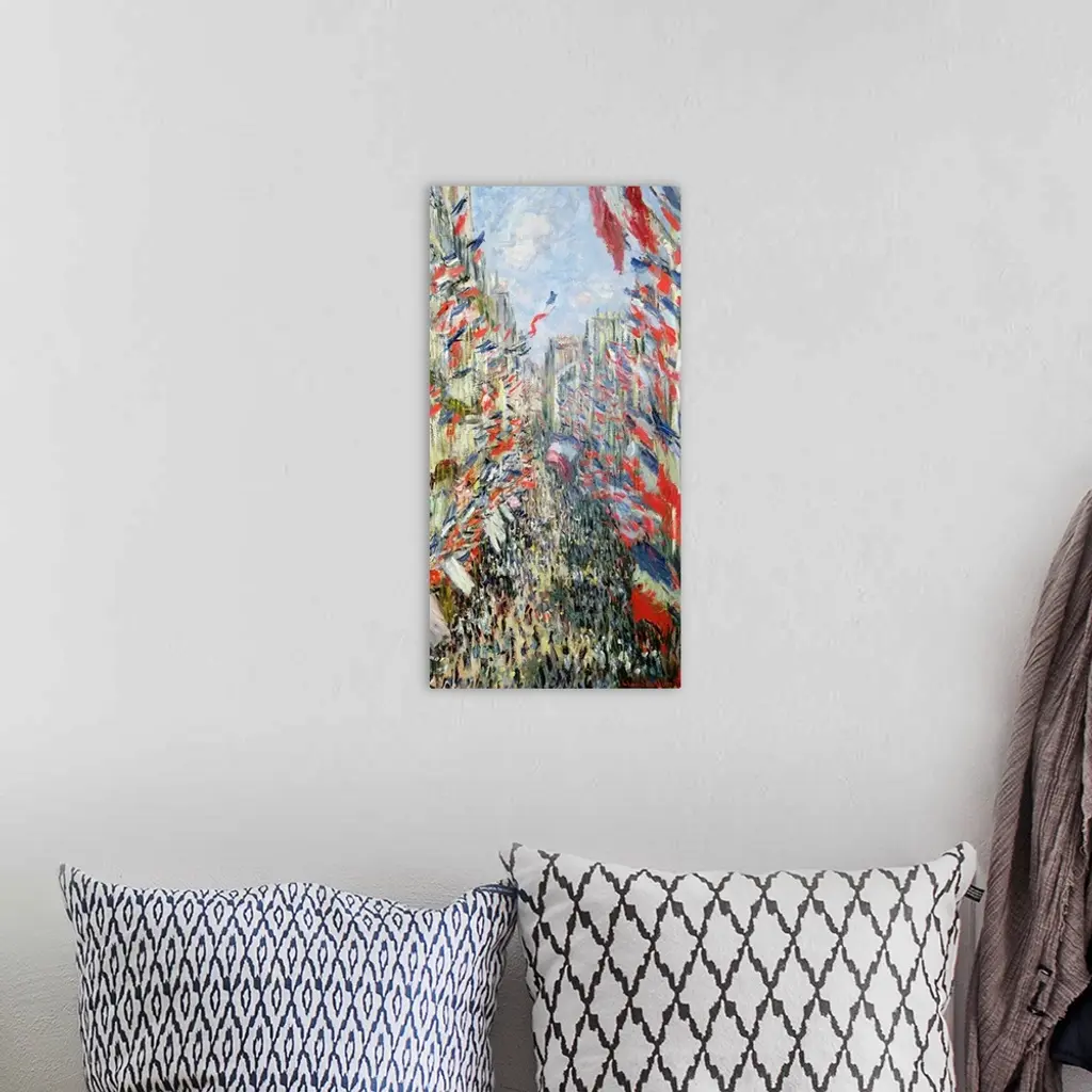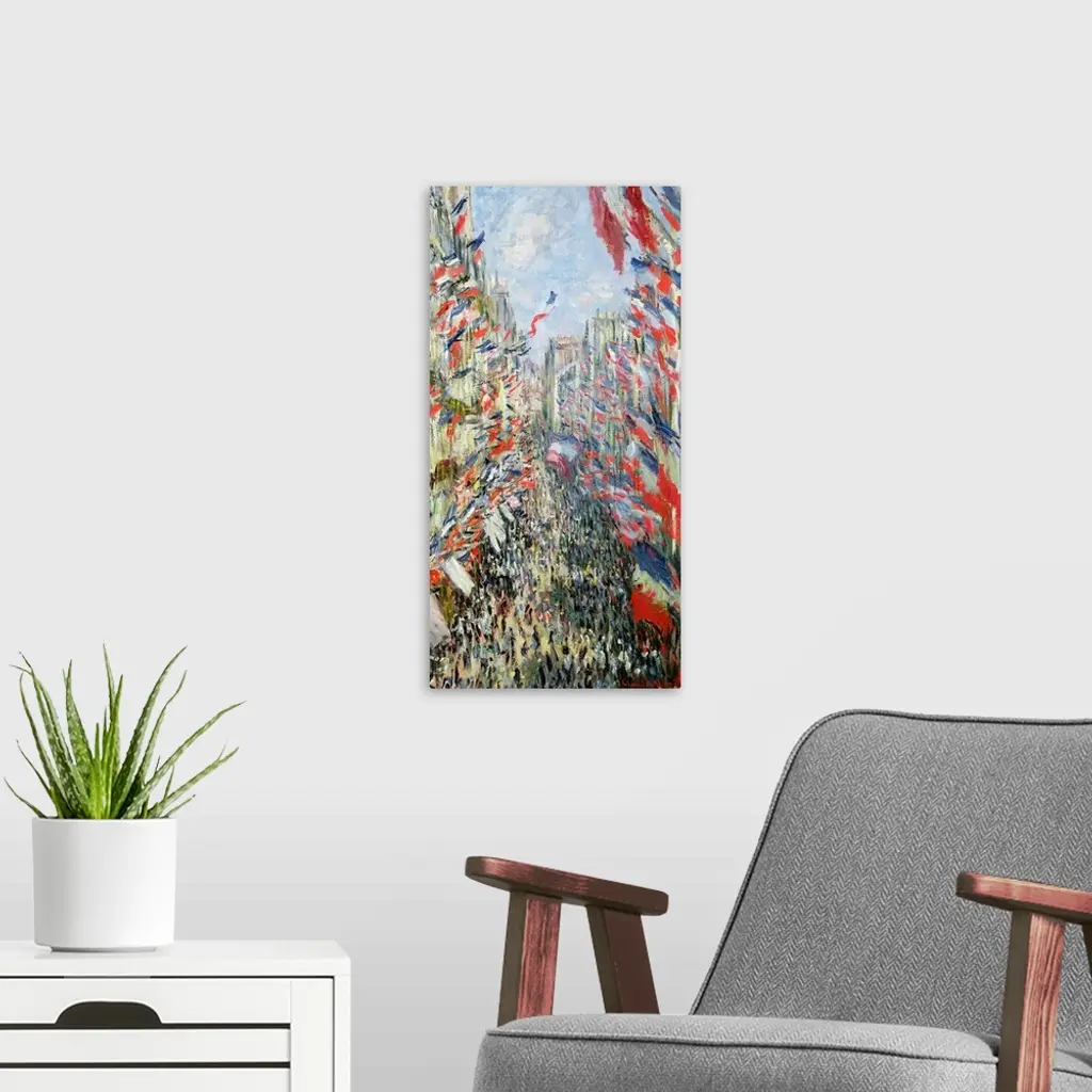 XIR52219 The Rue Montorgueil, Paris, Celebration of June 30, 1878 (oil on canvas) by Monet, Claude (1840-1926); 80x48.5 cm; Musee d'Orsay, Paris, France; Giraudon; French, out of copyright