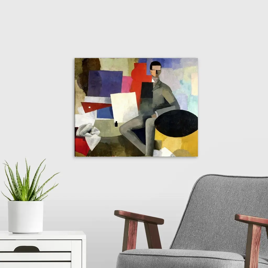 XIR154629 The Seated Man, or The Architect (oil on canvas); by La Fresnaye, Roger de (1885-1925); Musee National d'Art Moderne, Centre Pompidou, Paris, France; Lauros / Giraudon; French, out of copyright