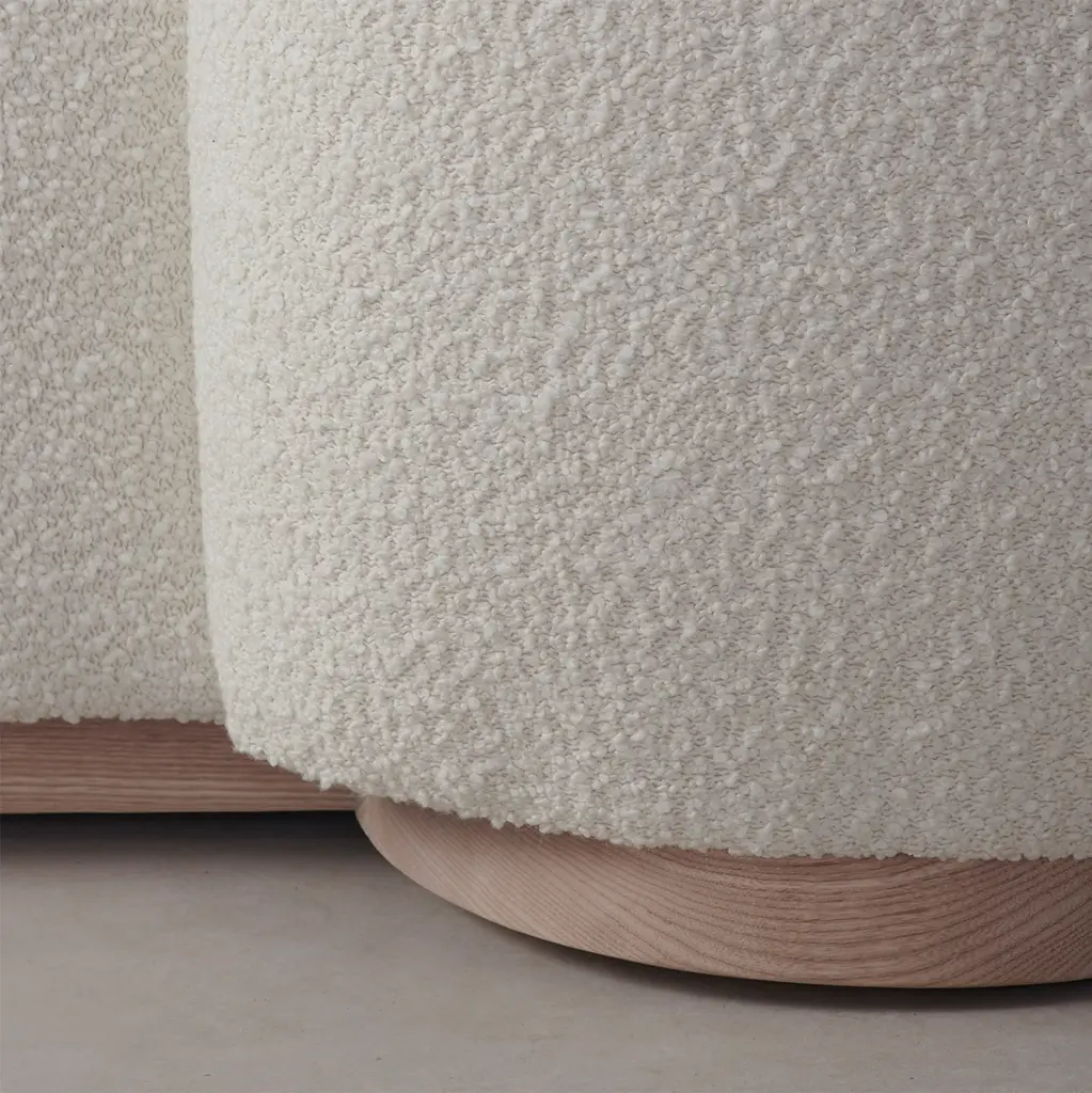 With its voluminous form and sweeping curves, the Smith Bed is a statement piece for the bedroom. Its enveloping shelter headboard and frame are fully upholstered and set upon a plinth base. Handcrafted in North Carolina.