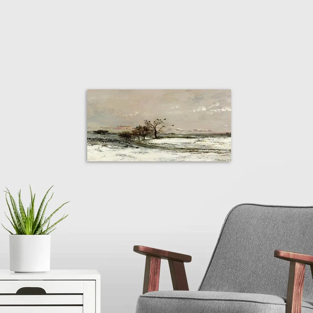 XIR53732 The Snow, 1873 (oil on canvas) by Daubigny, Charles Francois (1817-78); 90x120 cm; Musee d'Orsay, Paris, France; Giraudon; French, out of copyright