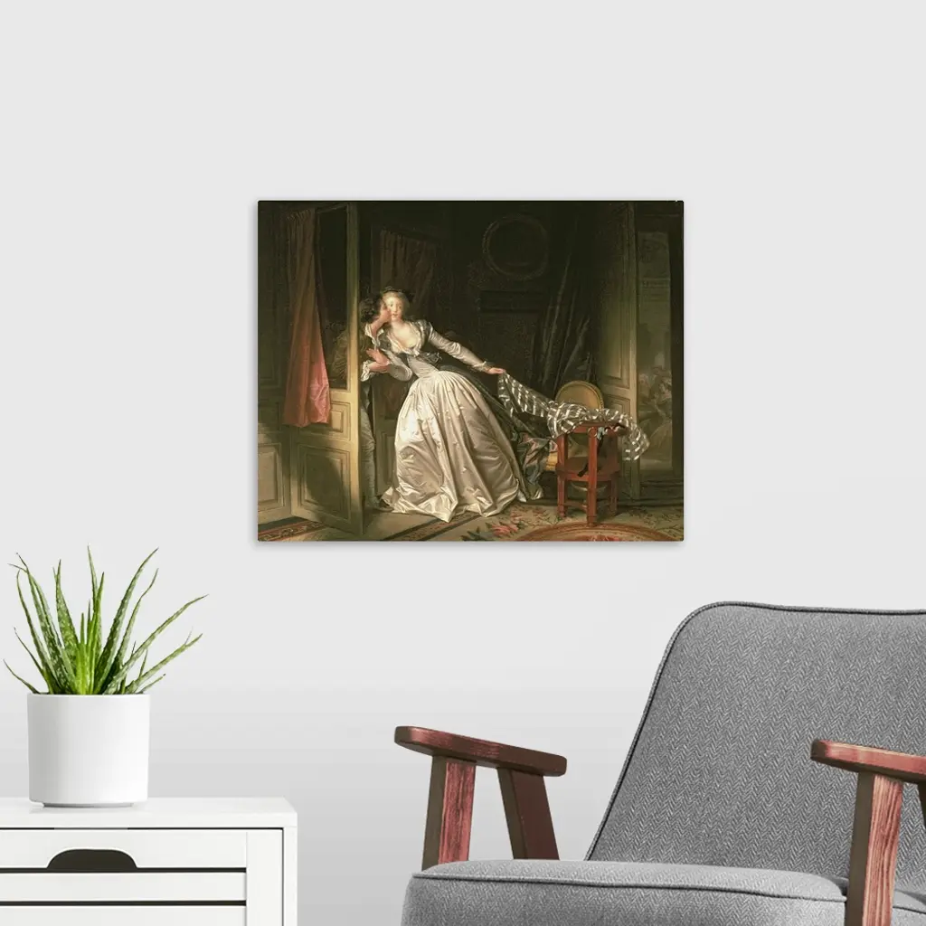 BAL37519 The Stolen Kiss, c.1788 by Fragonard, Jean-Honore (1732-1806); oil on canvas; 45x55 cm; Hermitage, St. Petersburg, Russia; French, out of copyright