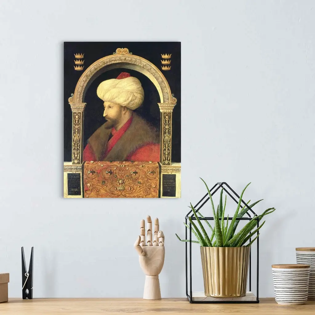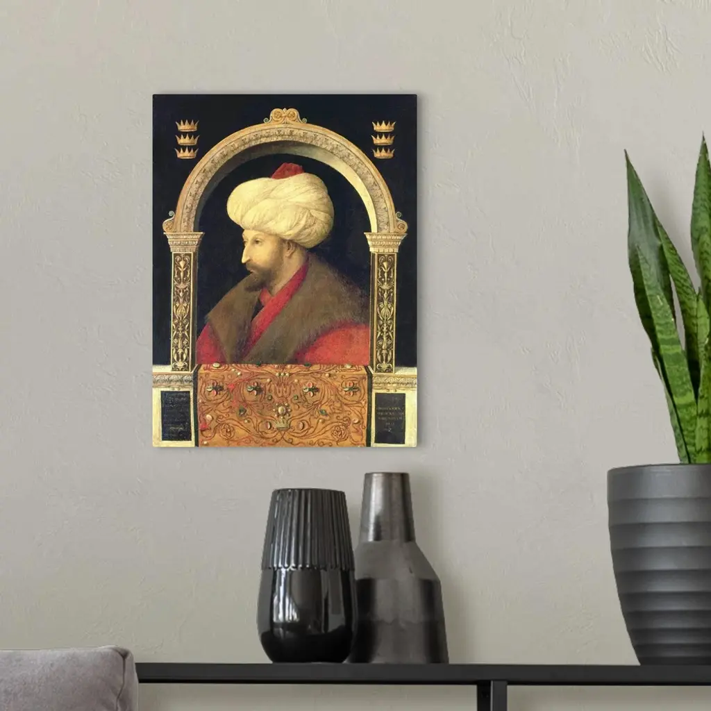 BAL72627 The Sultan Mehmet II (1432-81) 1480 (oil on canvas) by Bellini, Gentile (c.1429-1507) (attr. to); 69.9x52.1 cm; National Gallery, London, UK; (add. info.: end of Byzantium after fall of Constantinople in 1453); Italian, out of copyright