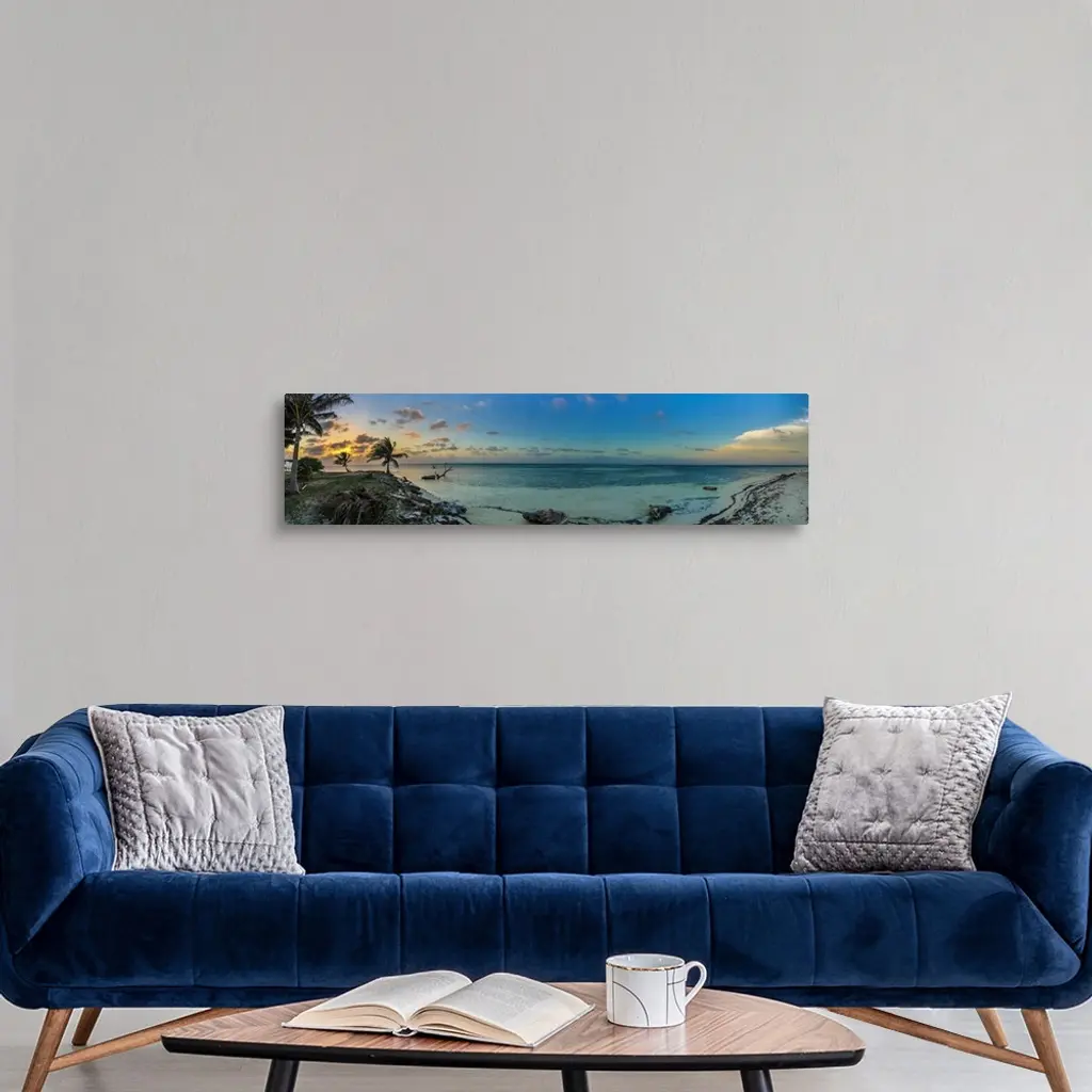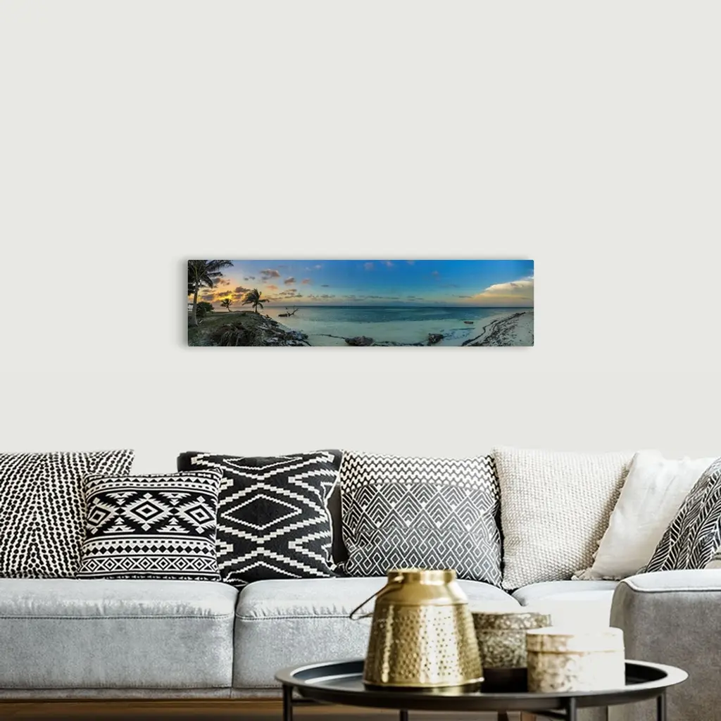 The sun sets above a remote caye in Belize wall art for home and office decor. Discover canvas art prints, photos, mural, big canvas art and framed wall art in GreatBigCanvas.com's varied collections.