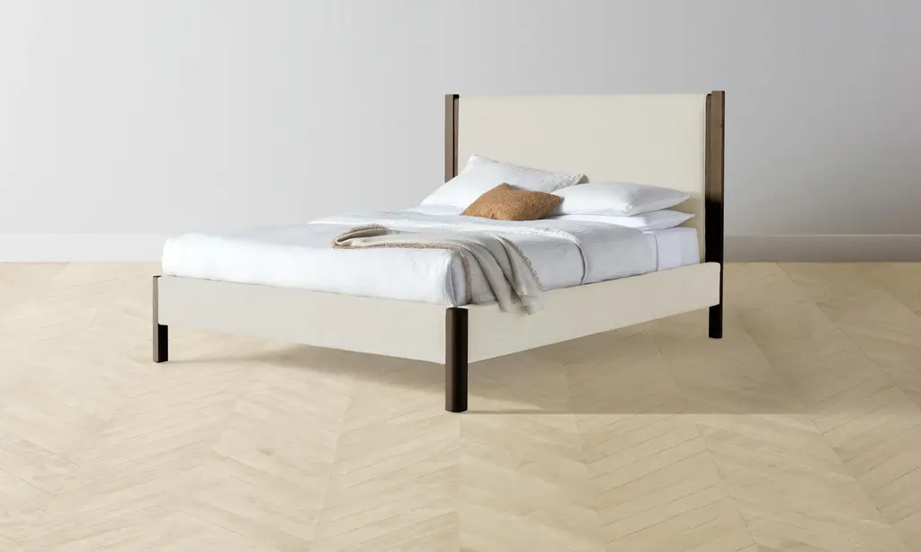 The Thompson Bed - Heritage Belgian Linen Egret - Queen / Coffee Ash