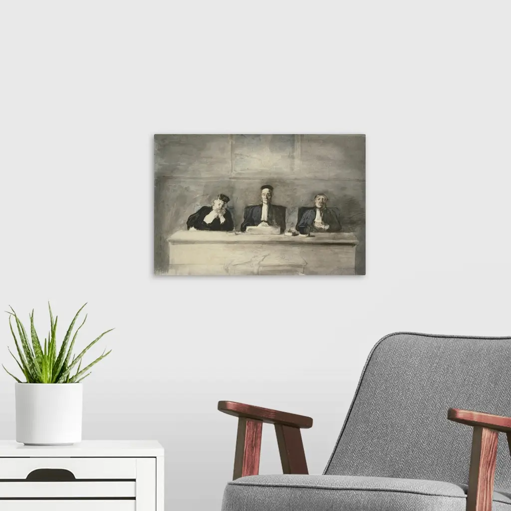 The Three Judges, 1858-60, watercolor and brush and black gouache, with charcoal, heightened with gray gouache, over touches of graphite, on ivory laid paper.