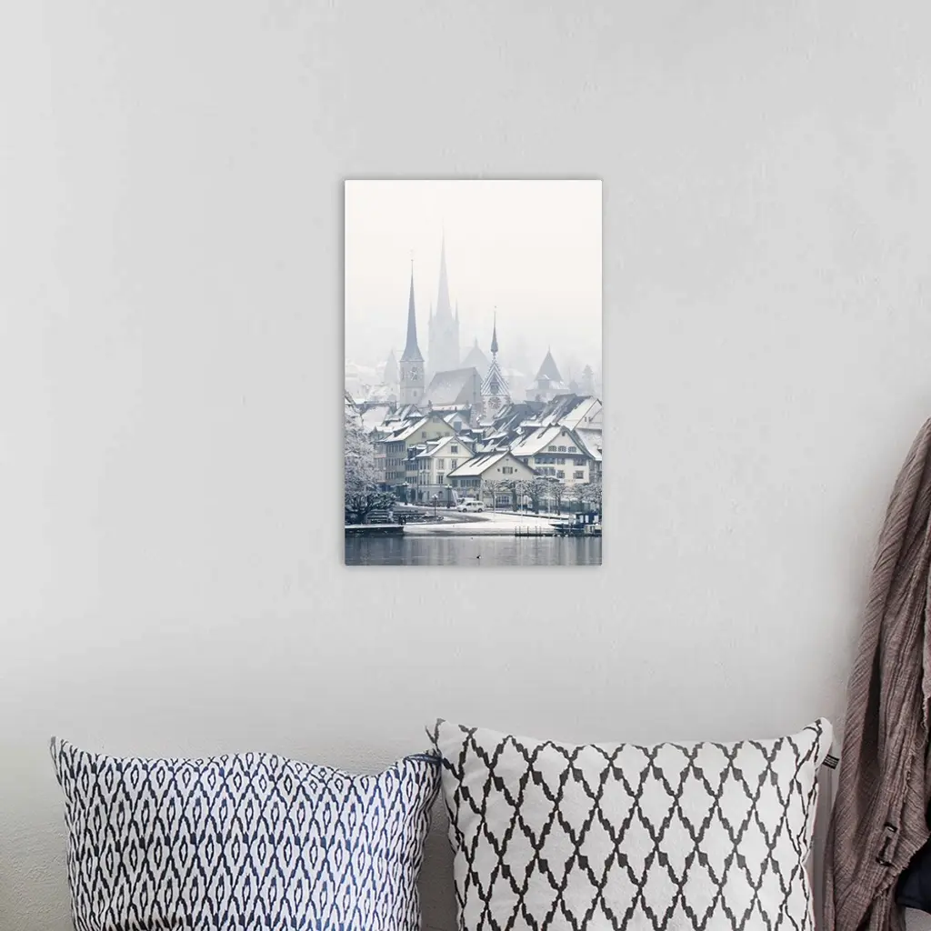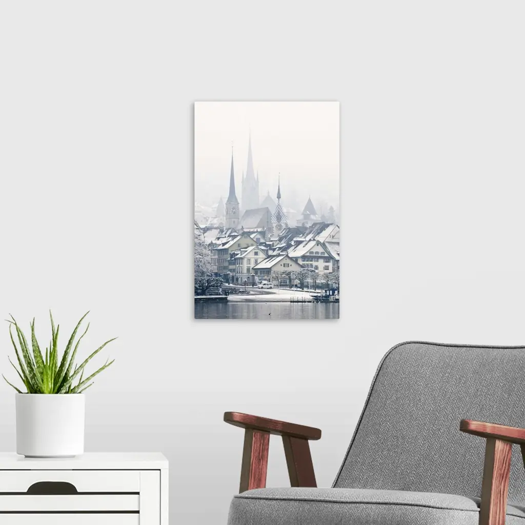 The town of Zug on a misty winter day, Zug, Switzerland wall art for home and office decor. Discover canvas art prints, photos, mural, big canvas art and framed wall art in GreatBigCanvas.com's varied collections.