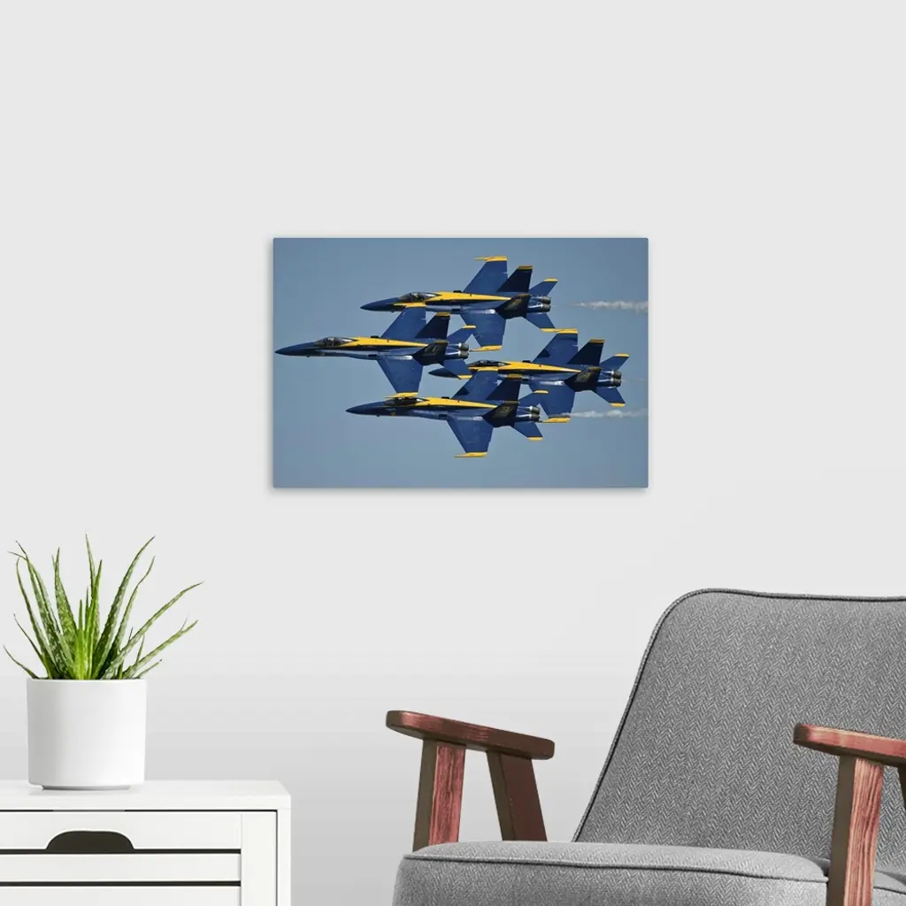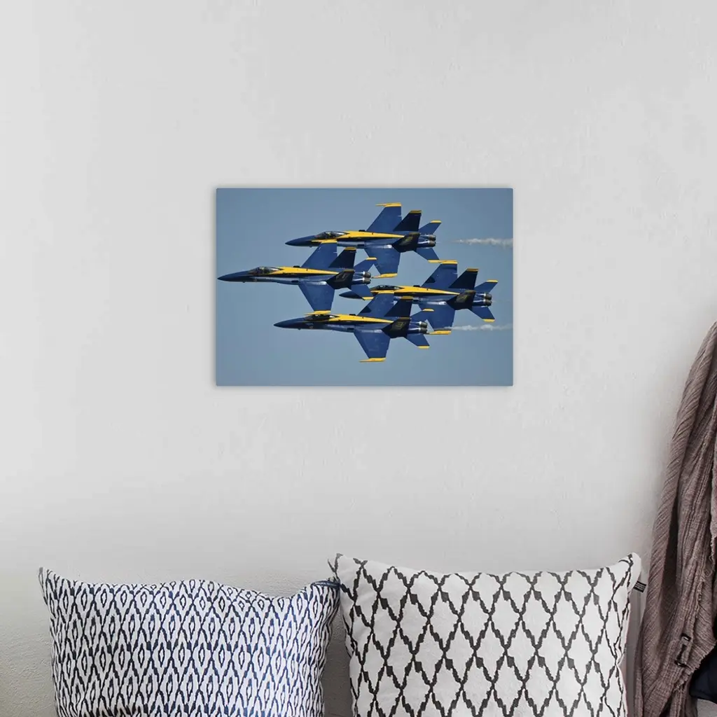 Quonset, Rhode Island, May 17, 2014 - The U.S. Navy flight demonstration squadron, the Blue Angels, fly in the Diamond formation at the Rhode Island National Guard Open House Air Show.