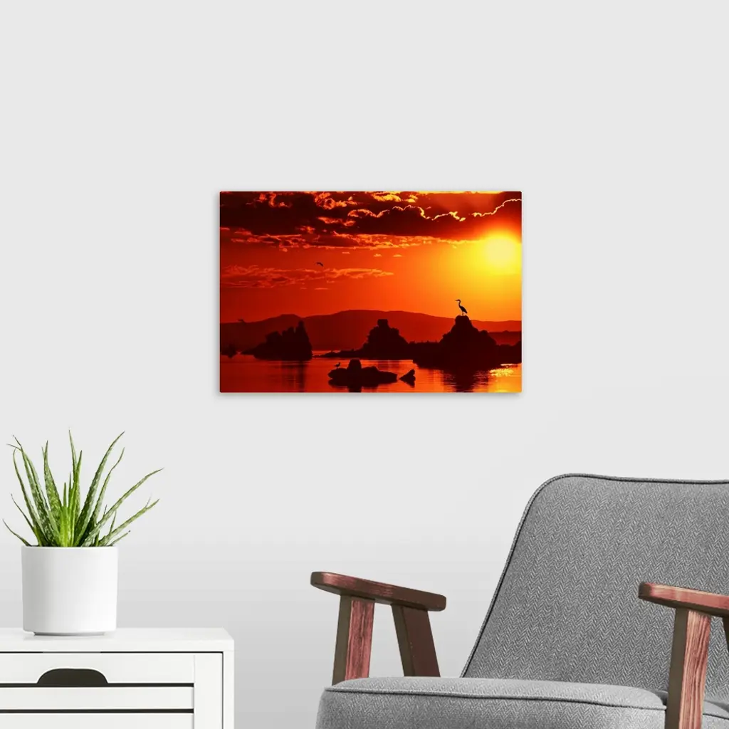 Sunrise over a lake with birds