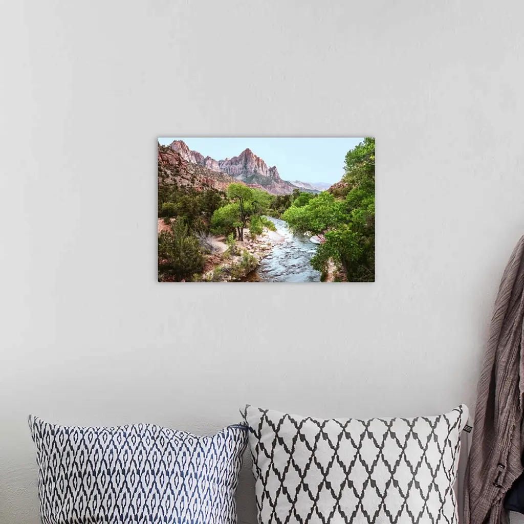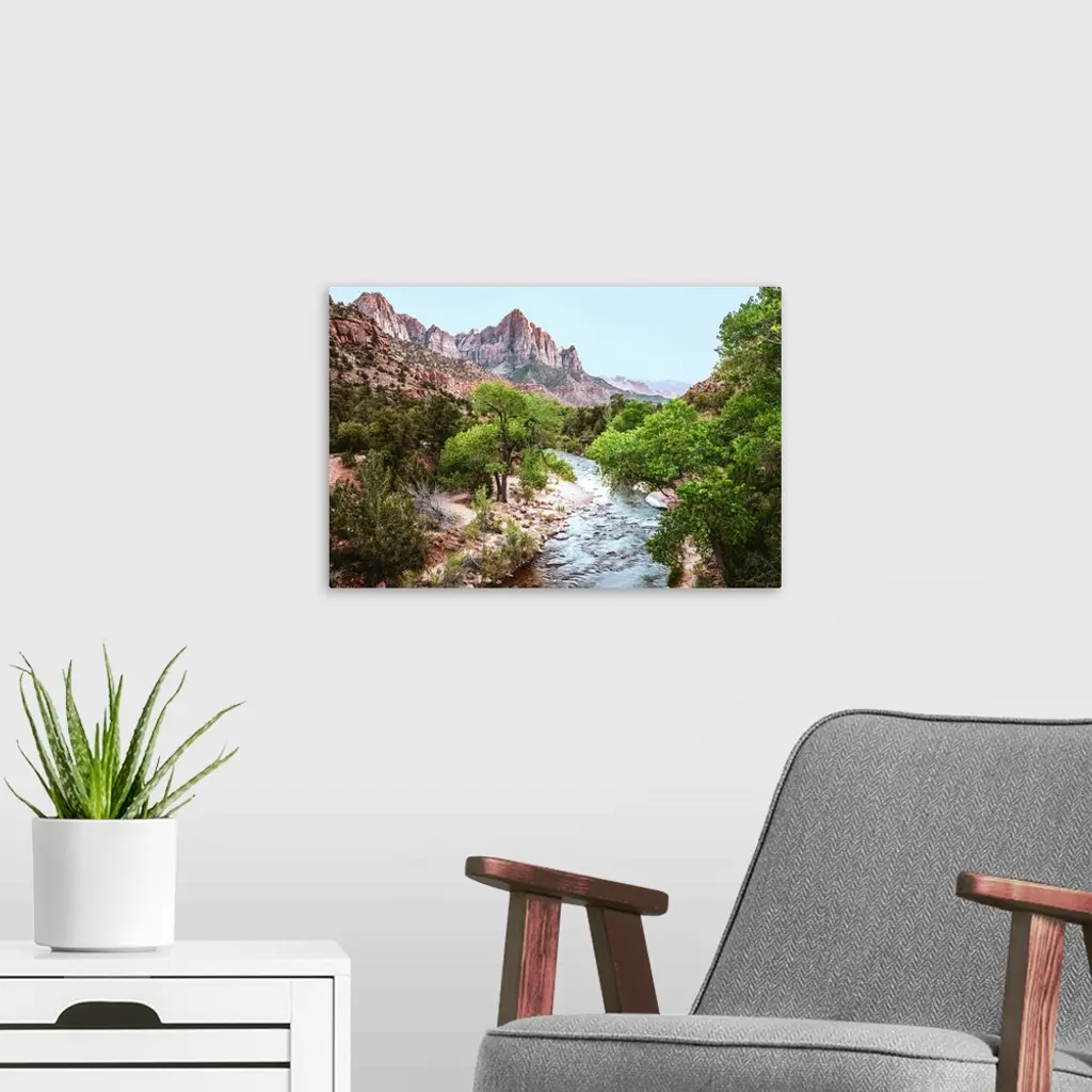 The Watchman Peak And Virgin River, Zion National Park, Utah