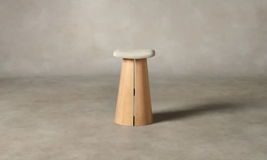 A contemporary interpretation of a classic saddle stool, the Weston has a contoured seat and sculptural base with a slit down the center that welcomes a whisper of light to stream through. Handcrafted at a family-owned workroom in upstate New York.