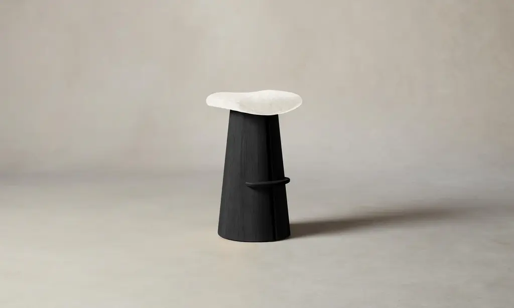 A contemporary interpretation of a classic saddle stool, the Weston has a contoured seat and sculptural base with a slit down the center that welcomes a whisper of light to stream through. Handcrafted at a family-owned workroom in upstate New York.