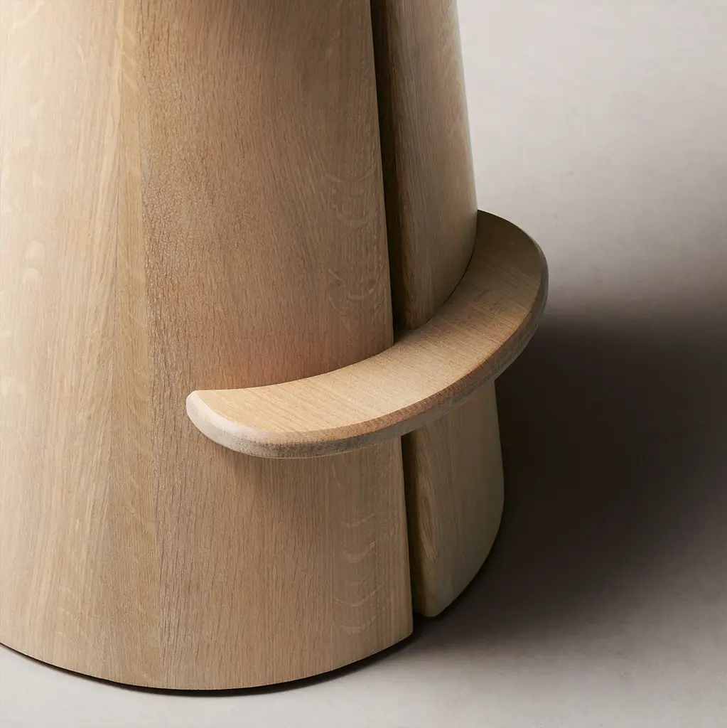 A contemporary interpretation of a classic saddle stool, the Weston has a contoured seat and sculptural base with a slit down the center that welcomes a whisper of light to stream through. Handcrafted at a family-owned workroom in upstate New York.