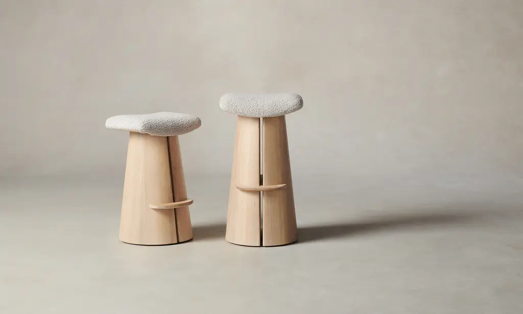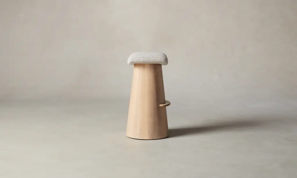 The Weston Bar & Counter Stool - Italian Bouclé Fossil - Bar Height / Golden Oiled Oak