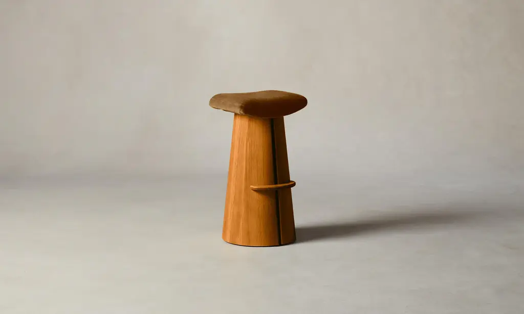 A contemporary interpretation of a classic saddle stool, the Weston has a contoured seat and sculptural base with a slit down the center that welcomes a whisper of light to stream through. Handcrafted at a family-owned workroom in upstate New York.