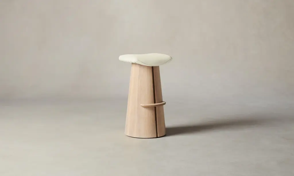 A contemporary interpretation of a classic saddle stool, the Weston has a contoured seat and sculptural base with a slit down the center that welcomes a whisper of light to stream through. Handcrafted at a family-owned workroom in upstate New York.