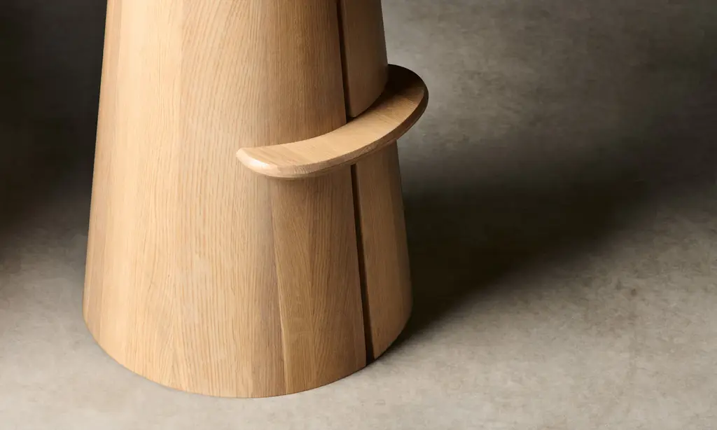 A contemporary interpretation of a classic saddle stool, the Weston has a contoured seat and sculptural base with a slit down the center that welcomes a whisper of light to stream through. Handcrafted at a family-owned workroom in upstate New York.
