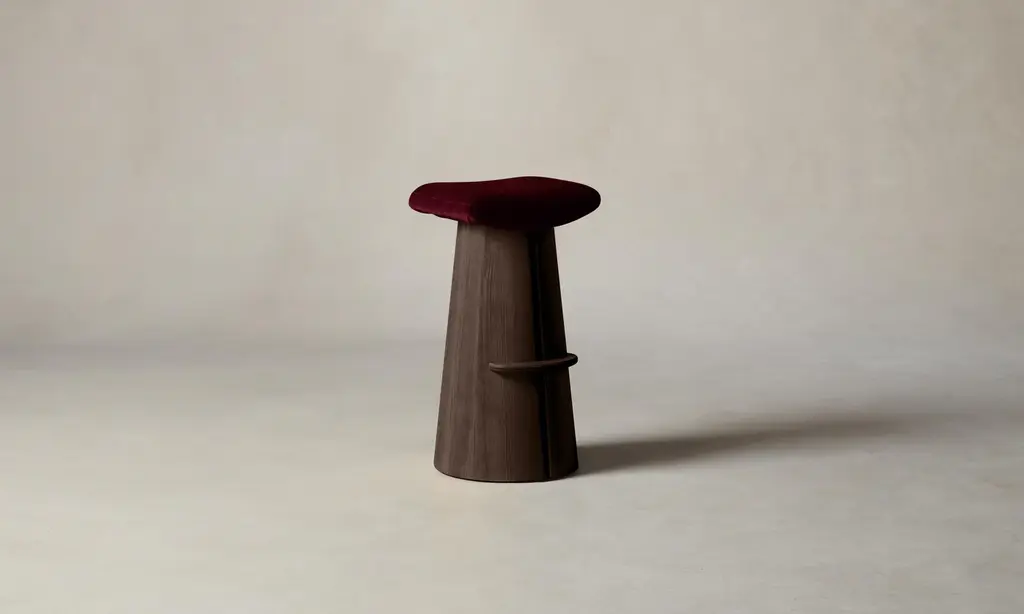 A contemporary interpretation of a classic saddle stool, the Weston has a contoured seat and sculptural base with a slit down the center that welcomes a whisper of light to stream through. Handcrafted at a family-owned workroom in upstate New York.