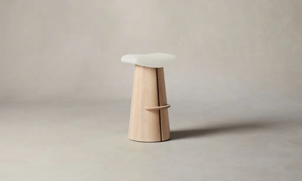 A contemporary interpretation of a classic saddle stool, the Weston has a contoured seat and sculptural base with a slit down the center that welcomes a whisper of light to stream through. Handcrafted at a family-owned workroom in upstate New York.