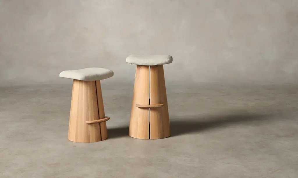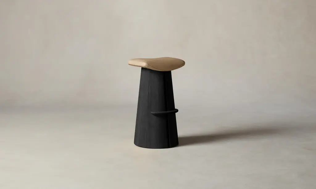 A contemporary interpretation of a classic saddle stool, the Weston has a contoured seat and sculptural base with a slit down the center that welcomes a whisper of light to stream through. Handcrafted at a family-owned workroom in upstate New York.