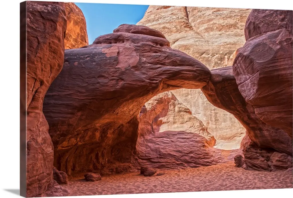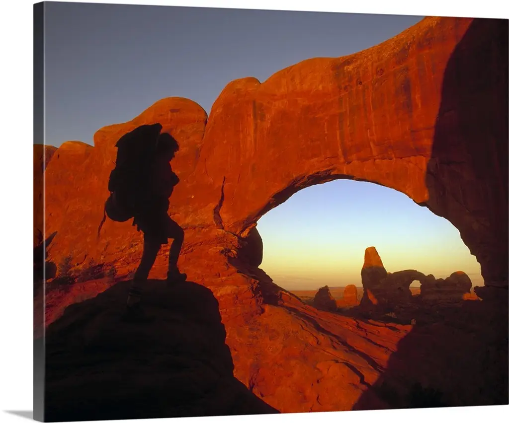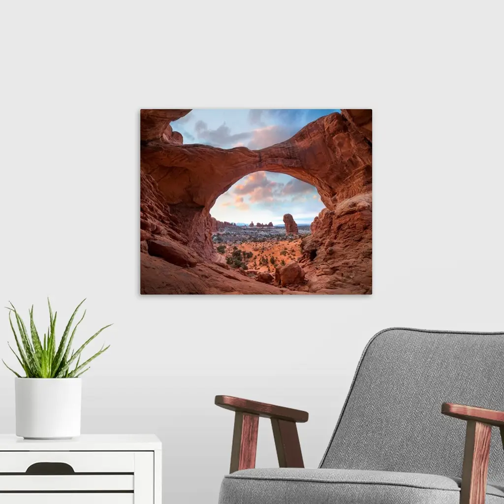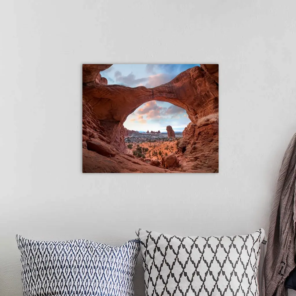The Windows Section From Double Arch At Sunrise, Arches National Park, Utah