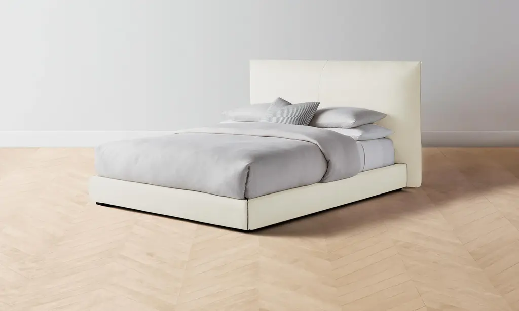 The Wythe Bed achieves a perfect balance of ease and sophistication. It features a laid-back, low profile and extended headboard traced with flange seams. Handcrafted in North Carolina.