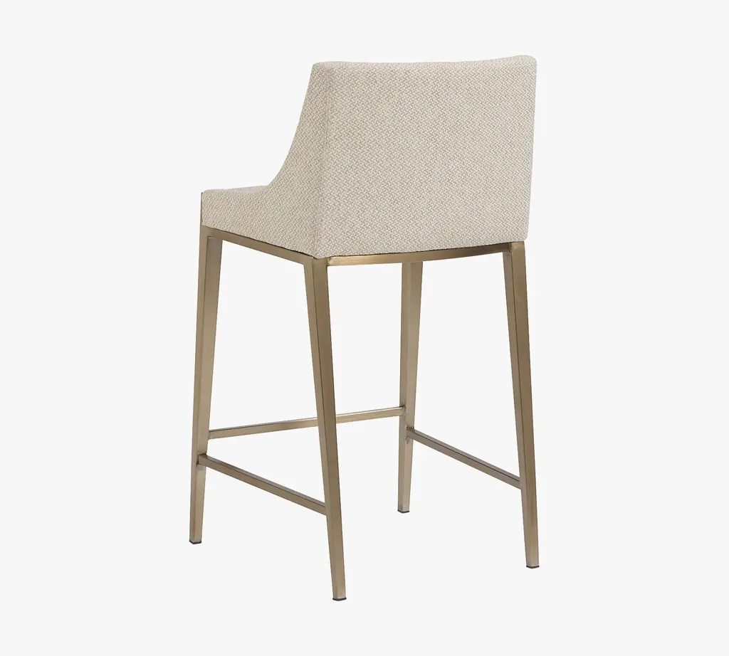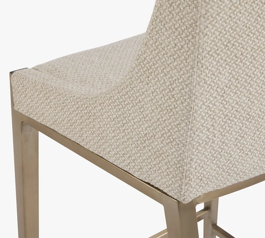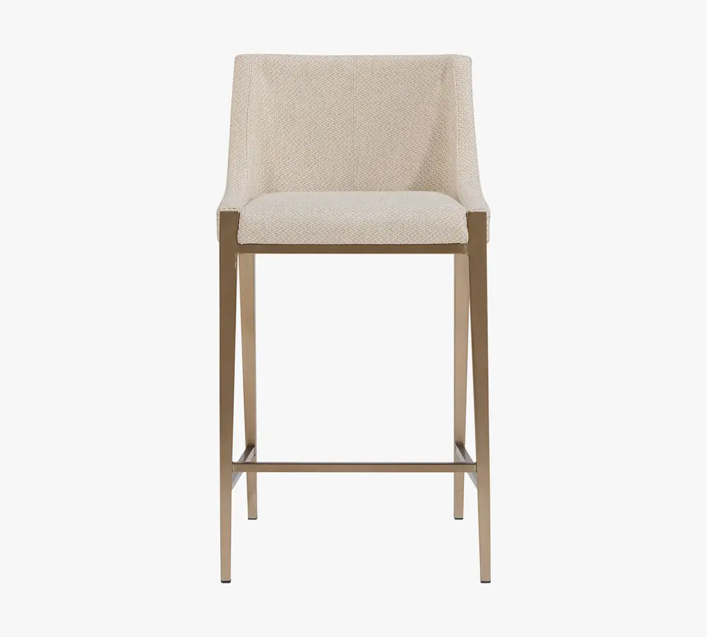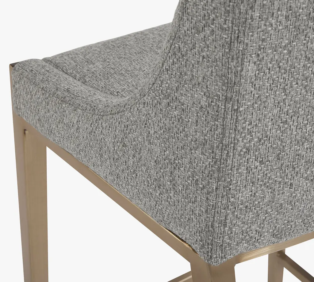 These elegant, modern seats pair the space savings of a stool with the comfort of an armchair. Contrasting details embolden the design: The smooth brass finish of the steel frame balances textured upholstery. Tapering legs and crisp edges support softly sloping arms - the suggestion of an embrace with total freedom of movement.