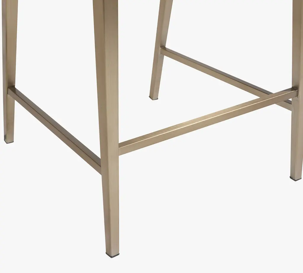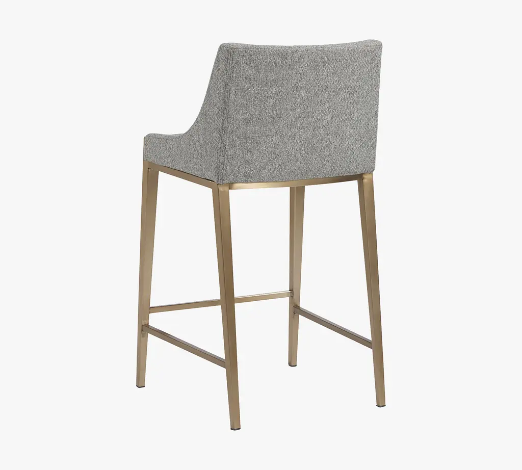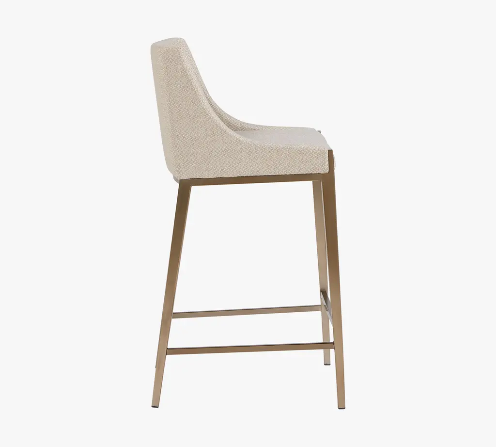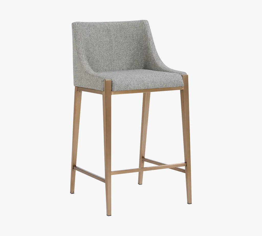 These elegant, modern seats pair the space savings of a stool with the comfort of an armchair. Contrasting details embolden the design: The smooth brass finish of the steel frame balances textured upholstery. Tapering legs and crisp edges support softly sloping arms - the suggestion of an embrace with total freedom of movement.