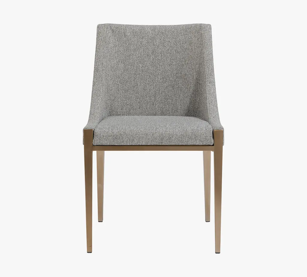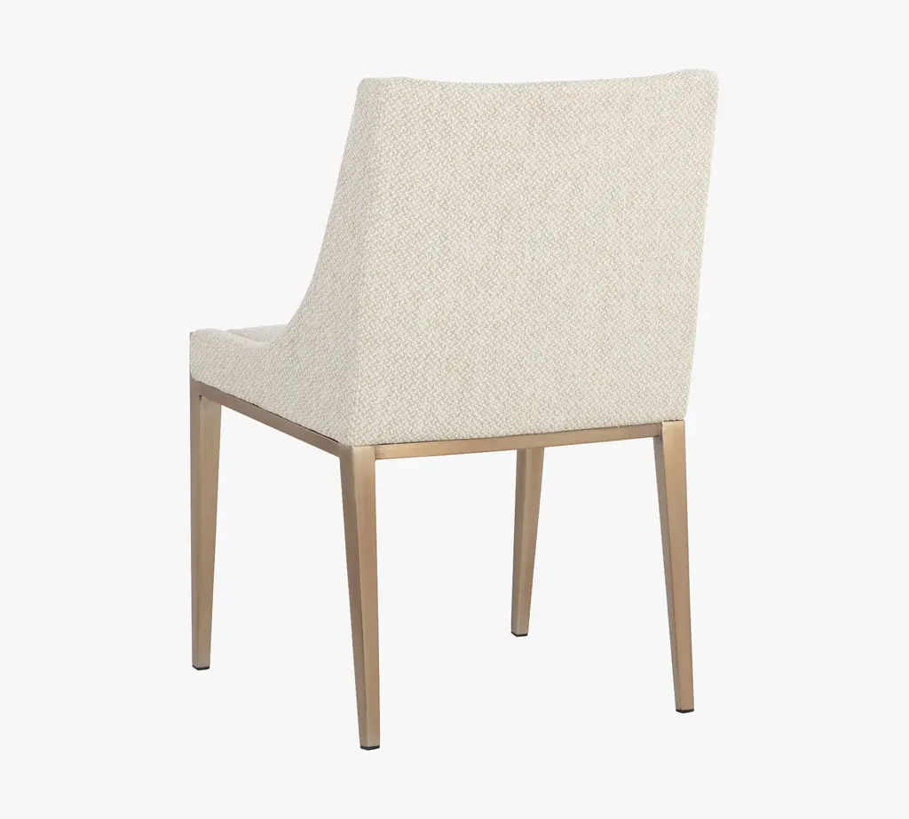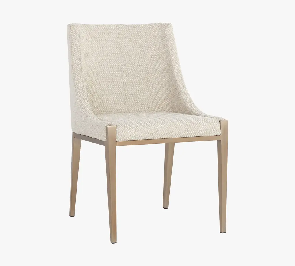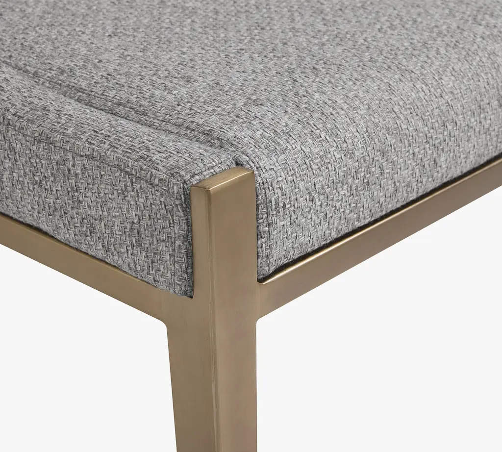 Our broad, low-slung Theas offer a modern take on elegance and comfort with contrasting details that embolden the design: The smooth brass finish of the steel frame balances textured upholstery. Tapering legs and crisp edges support softly sloping arms - the suggestion of an embrace with total freedom of movement.