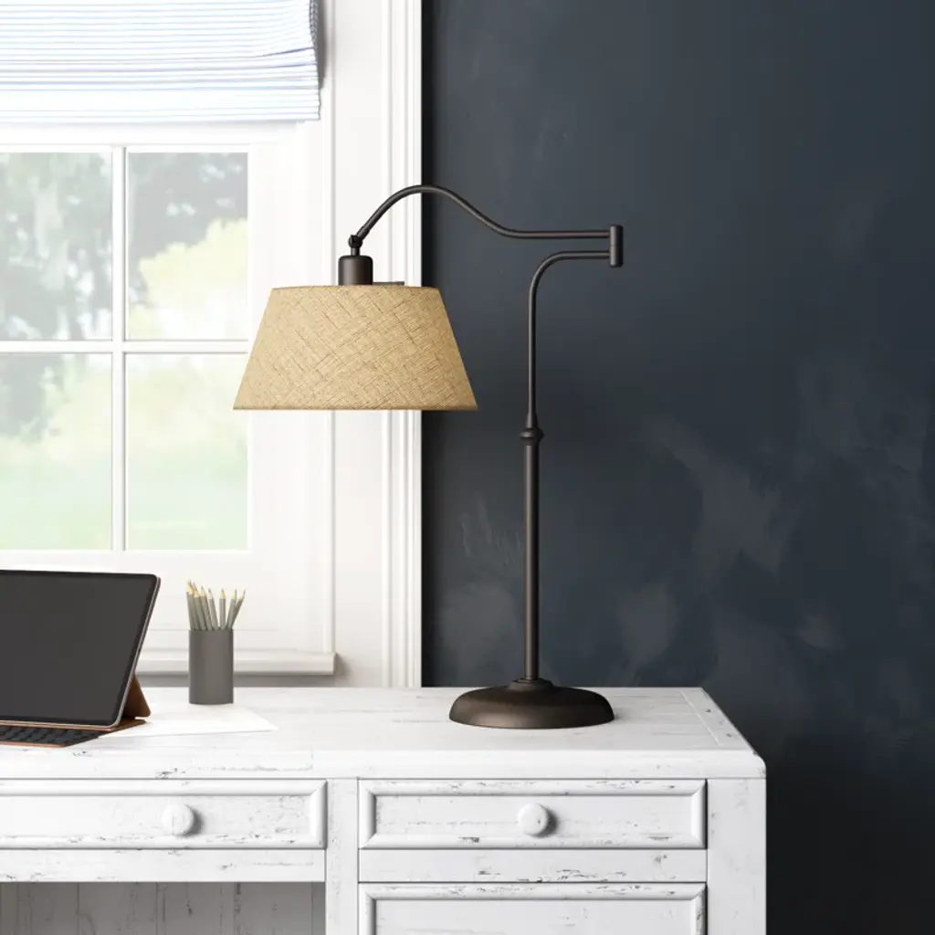 Swing-arm lamps have made their way into our hearts and homes with their distinctive style and convenient versatility. This is a great partner to your nightstand, desk, or sectional – really any place where you want the ability to direct light for reading or other tasks. It's made from stainless steel and comes in an array of finishes. The single bulb (sold separately) is surrounded by an empire shade.