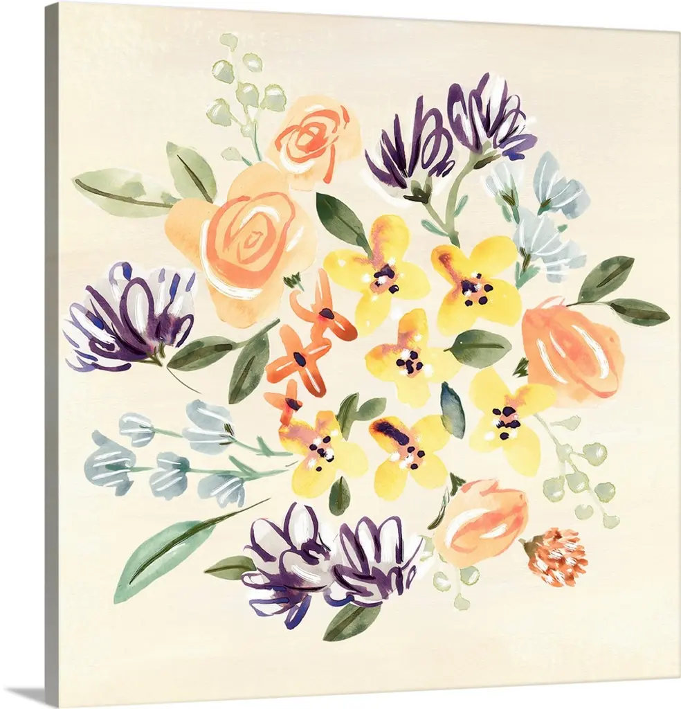 Mason Jar bursts with colorful flowers in this charming vignette.