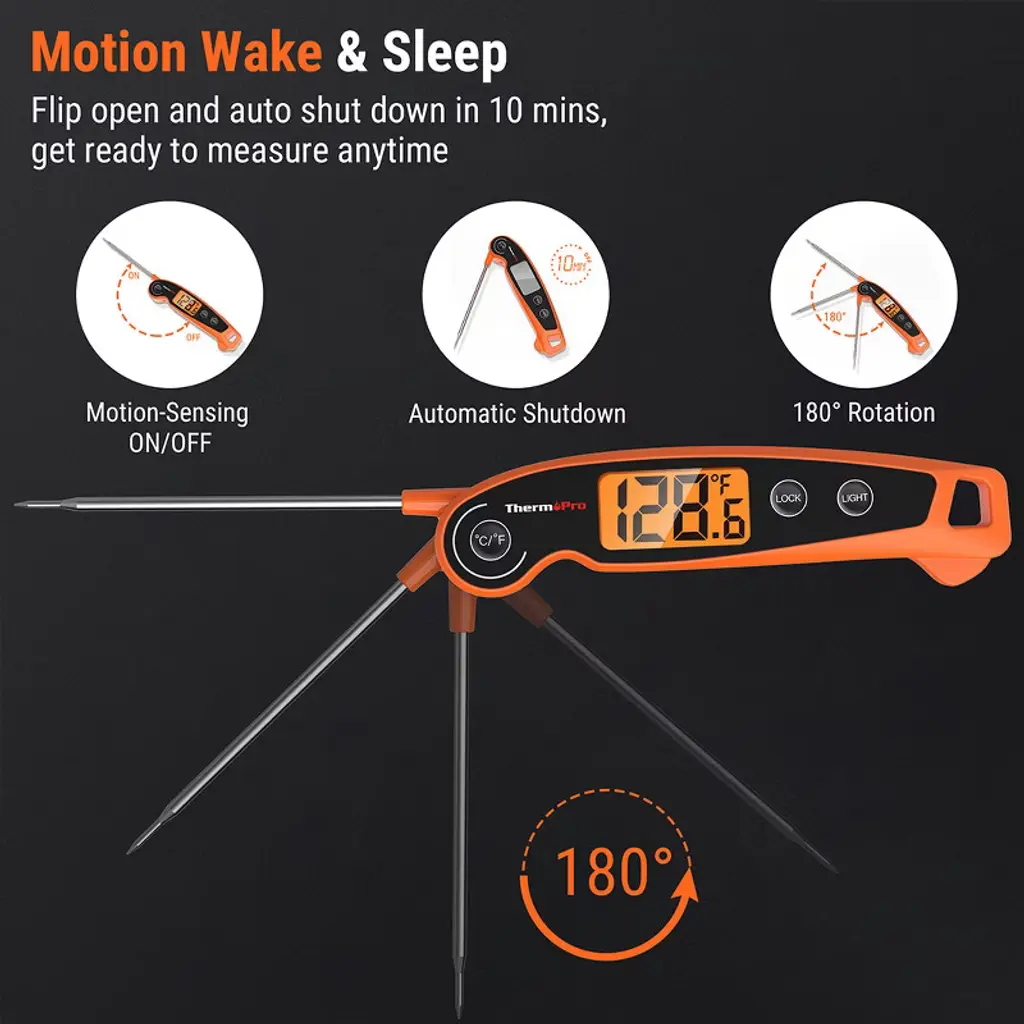 Discover the joy of stress-free cooking with the TP605W meat thermometer, a perfect blend of practicality and style for your culinary ventures. Whether you're sizzling steaks on the grill or baking in the kitchen, this waterproof and worry-free gadget ensures your meals turn out just right, rain or shine. Effortlessly washable, it's as durable as it is convenient.Embrace the ease of cooking with the TP605W's smart features. It springs to life when you open the probe and shuts off to save power, blending seamlessly into your active cooking routine. Fast, accurate, and versatile, it's your trusty companion for every recipe. Its compact design, coupled with a clear, backlit display, adds a touch of sophistication to your kitchen toolkit. As you flip between °C and °F or lock in the perfect temperature, the TP605W is more than a thermometer—it's an extension of your passion for cooking, making every meal a delightful experience.