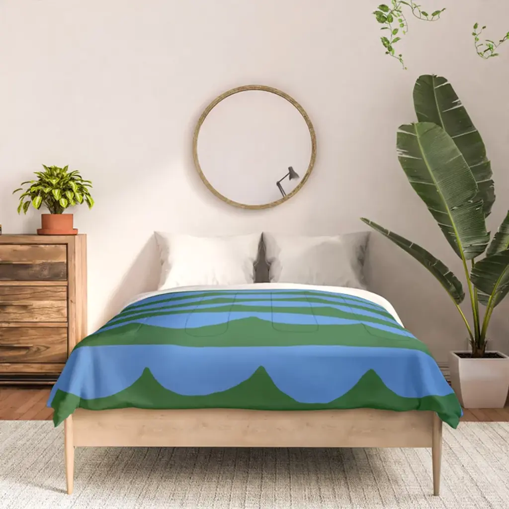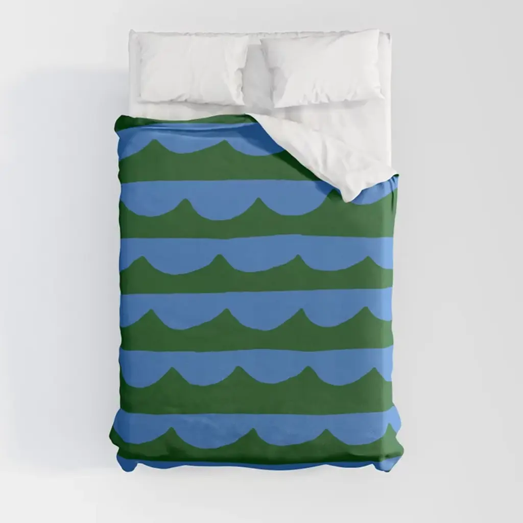 Thin Scalloped Line In Blue And Green Comforter